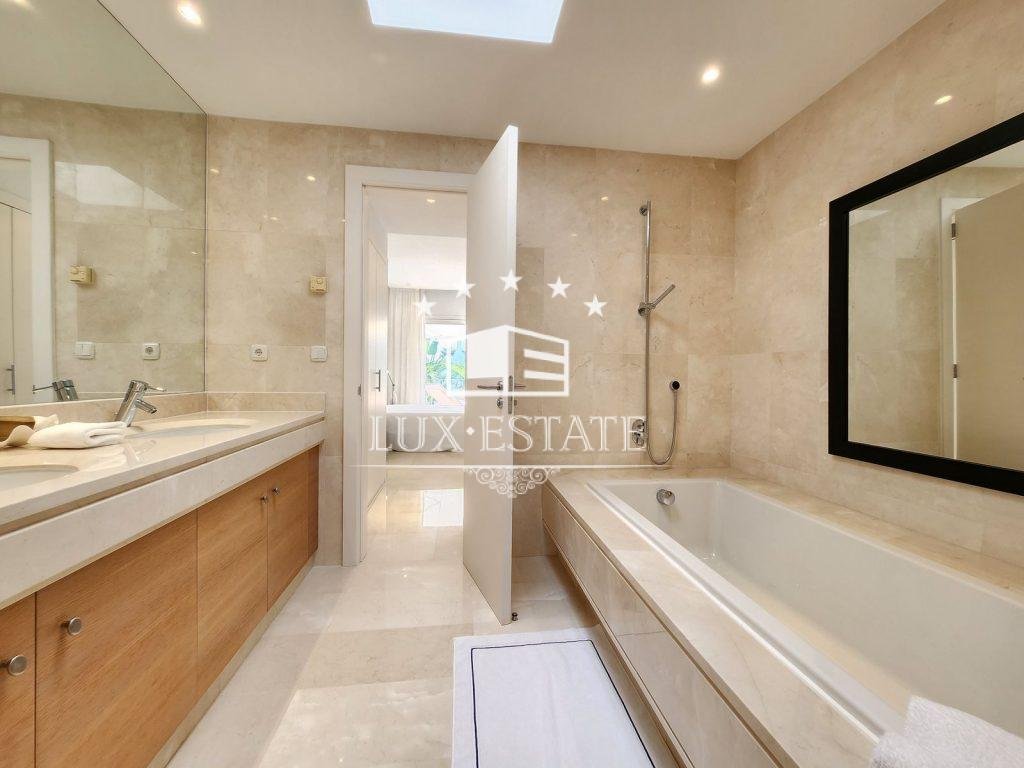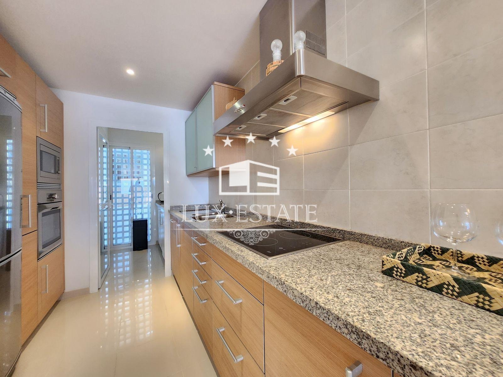 It’s worth noting that the property features centralized hot/cold air conditioning, marble flooring, double glazing, a laundry room, built-in wardrobes, and a south-facing aspect. It is also fully furnished.