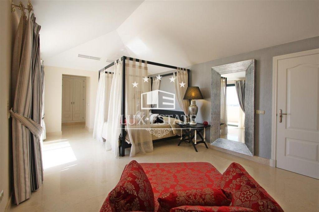 Duplex penthouse available for purchase in Benahavis that offers 4 bedrooms, 4 en suite bathrooms, 1 additional toilet, and a south-facing orientation. This property also boasts a communal garden, swimming pool, and private garage. The property dimensions comprise of 397 m² total area with an interior space of 282 m² and a terrace of 115 m². Has the front line golf facility and is close to amenities. Additionally, it includes air conditioning, central heating, a fully equipped kitchen, a utility room, a fireplace, marble flooring, a jacuzzi, satellite TV, a storage room, a gym, an alarm, a solarium, a security entrance, double glazing, a video entrance, a dining room, a barbecue, 24-hour security service, a telephone, a guest toilet, a private terrace, a living room, a study room,sea view, country view, and mountain view. The property features panoramic golf views, bars, a laundry room, and internet access with wifi. The covered terrace is equipped with electric blinds and offers lovely garden and pool views. Inside, you’ll find fitted wardrobes, underfloor heating in the bathrooms, and a separate dining room. The property is located in a gated community with lift access and a doorman. Enjoy the refreshing sea breeze on the uncovered terrace or relax in the comfortable living area with glass doors leading to a balcony. Optional furniture is available, and the property is in excellent condition with stunning lake views. Conveniently located close to shops, town, and schools, the property also has surveillance cameras for added security.
