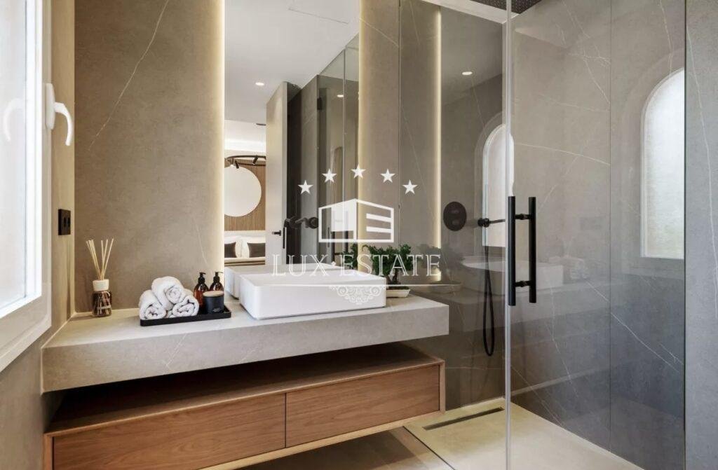 The ground floor welcomes you with a grand, open-plan living space that radiates luxury. Every detail is meticulously designed to offer both style and functionality, bathed in natural light that enhances the exquisite materials and warm ambiance.