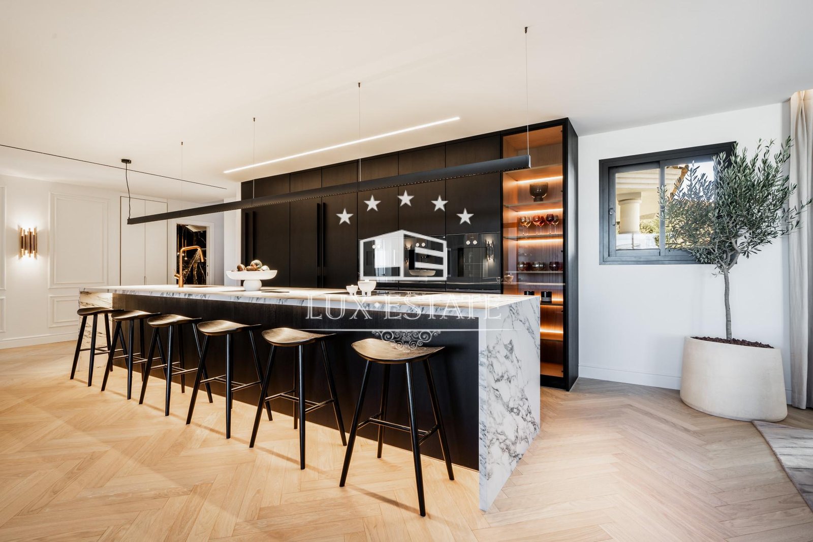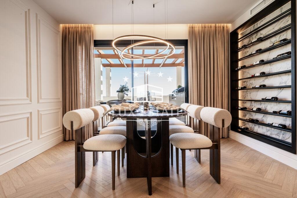 The penthouse offers perfection in detail . The gorgeous open plan kitchen with exquisite marble details steals the show when walking through the door. This isn’t just a kitchen; it’s a masterpiece where every meal is prepared in style.