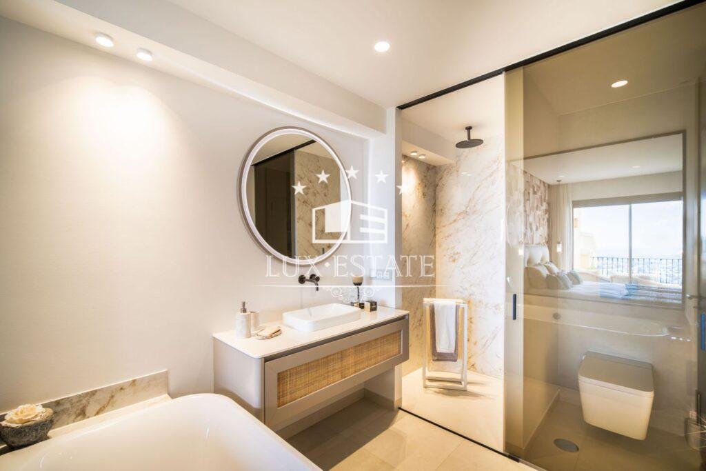 The penthouse offers three beautifully appointed bedrooms, each crafted with comfort and tranquility in mind. The master suite is a true retreat — a private haven featuring mesmerizing views and an immaculate en-suite bathroom that exudes spa-like elegance.