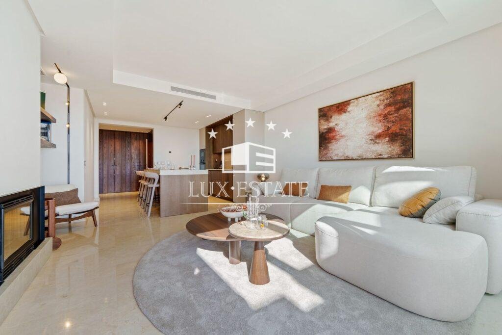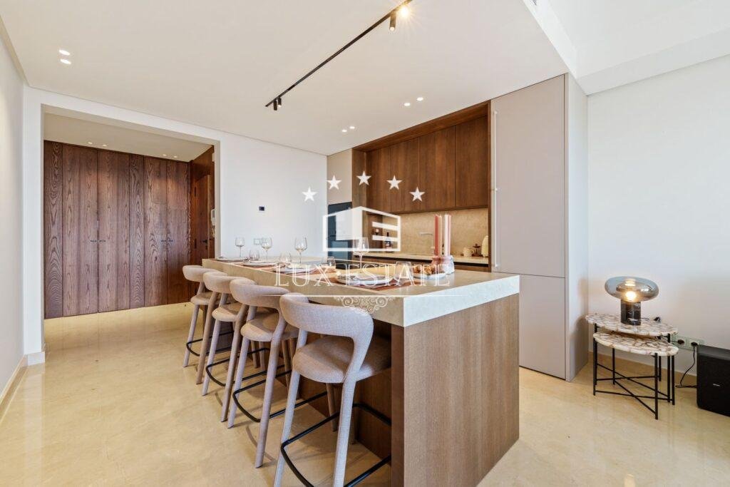 Inside, modern sophistication takes center stage. The open-plan layout enhances the sense of space, light, and harmony, allowing the living area to flow effortlessly into the state-of-the-art kitchen. Equipped with premium appliances, generous storage, and expansive worktops, the kitchen is designed for both gourmet cooking and stylish entertaining.