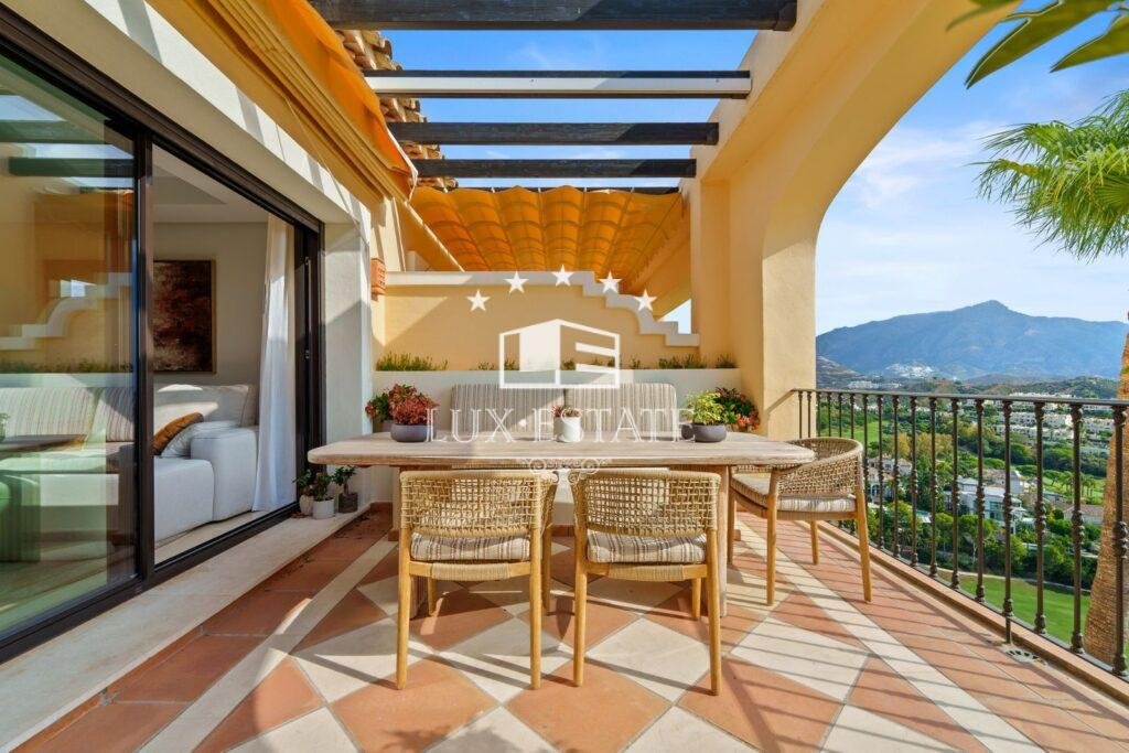 Experience unparalleled luxury with this extraordinary penthouse in the exclusive enclave of Buenavista, La Quinta. Perched in a privileged position, the residence boasts breathtaking panoramic views of the Mediterranean Sea, majestic mountains, and lush golf greens — a setting that defines elevated living.