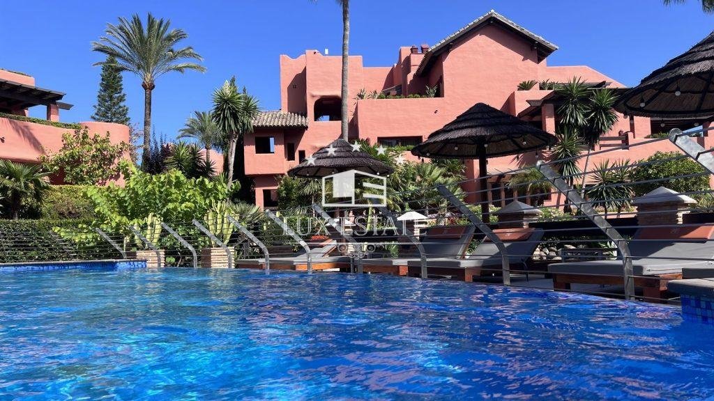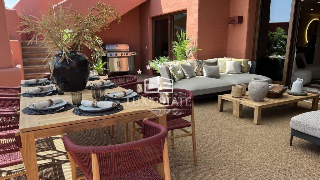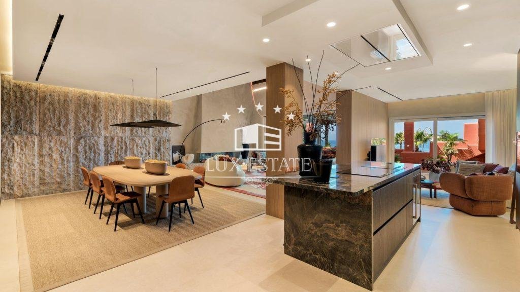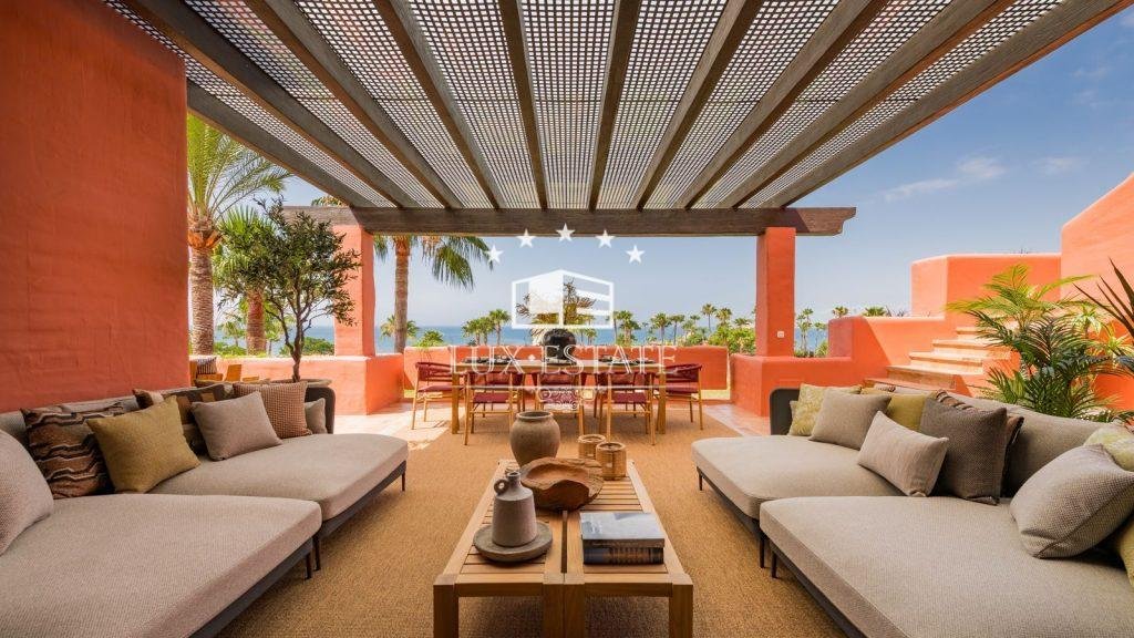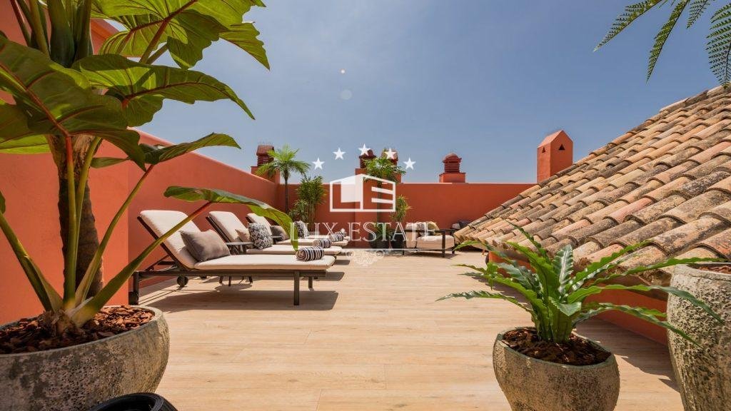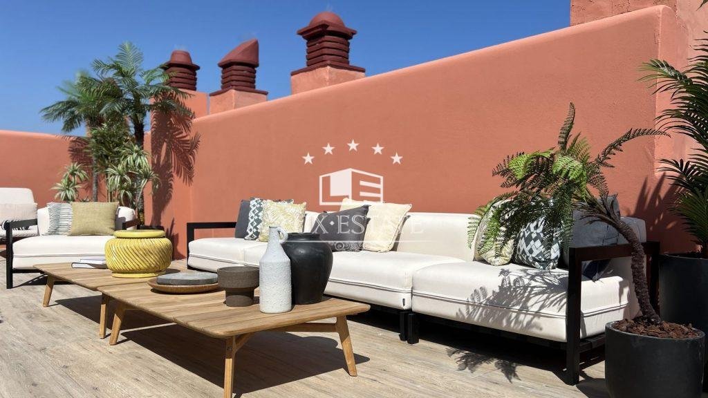 A remarkable penthouse with an exceptional WOW-factor; unsurpassable in the Costa del Sol market! Recently remodelled and renovated in 2022/3 to a superior standard, all living areas are located on the main floor alongside a spacious terrace for outdoor dining and relaxation. The solarium upstairs is a vast, multi-sectioned space that accommodates a chill-out area, a bar, a sauna, and a high-end jacuzzi/plunge pool. The location of this penthouse in the complex is unparalleled with its complete south-facing orientation providing unobstructed views of the sea.