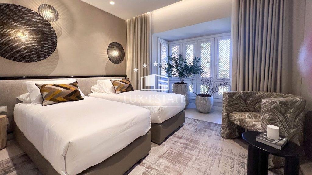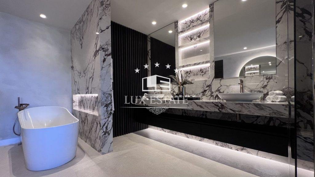 The master bedroom resembles the finest luxury hotel suite with its walk-in wardrobe, en-suite bathroom, and sitting area. Additionally, there is one more guest bedroom with an en-suite bathroom, two guest bedrooms sharing a bathroom, and a guest toilet.