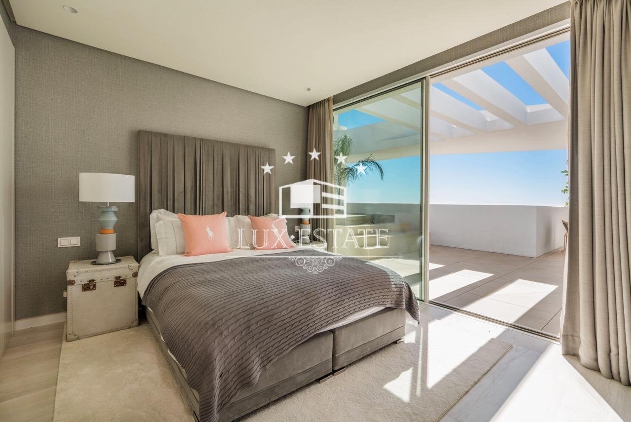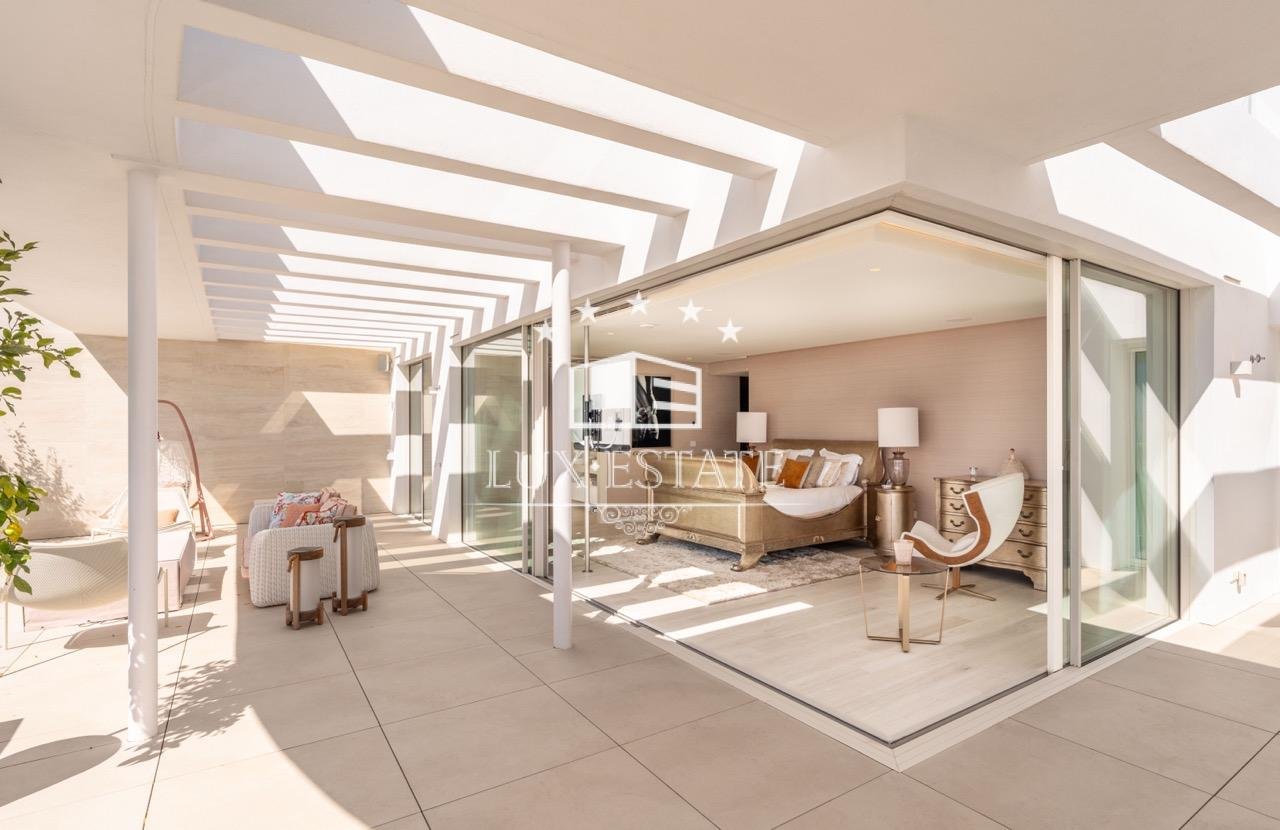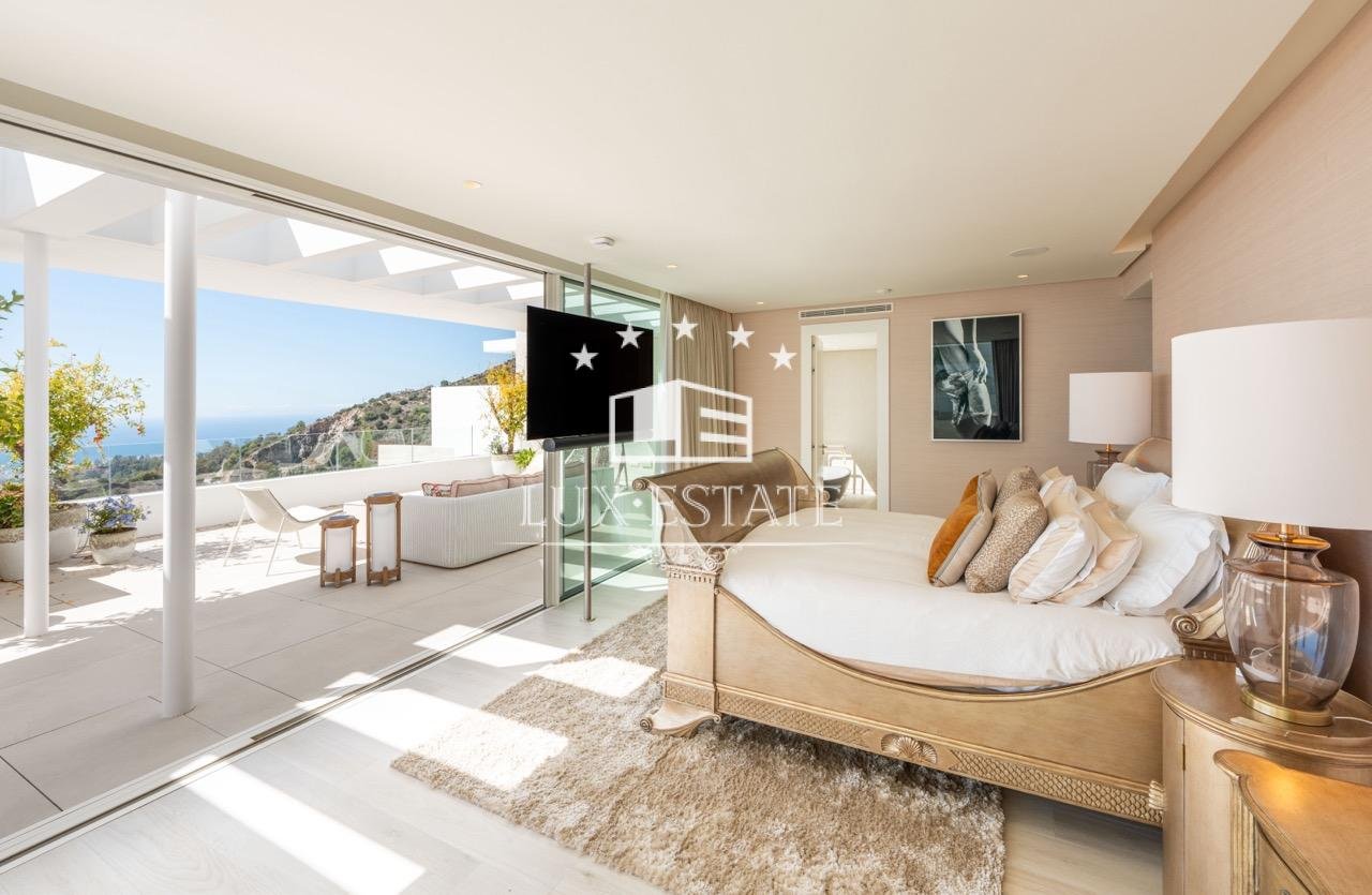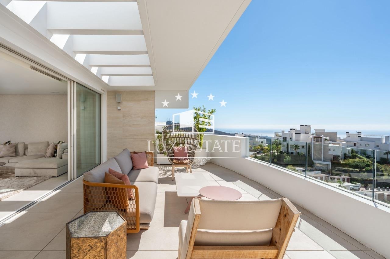 Surrounded by breathtaking natural beauty and luxury properties, this south-facing triplex penthouse spans 275 m² and is designed to impress. Built to the highest specifications, it exudes modern elegance, comfort, and functionality. The main level, originally intended as a 3-bedroom apartment, now features an expansive open-plan living area that unites a stylish living room, dining area, and a sleek kitchen with an island and bar, offering an ideal space for entertaining family and friends. Wide sliding windows and glass doors create a seamless connection between indoor and outdoor spaces, flooding the interiors with natural light. The fabulous 107-m² terraces allow you to fully enjoy the stunning sea and mountain views, along with the Costa del Sol’s unbeatable climate.