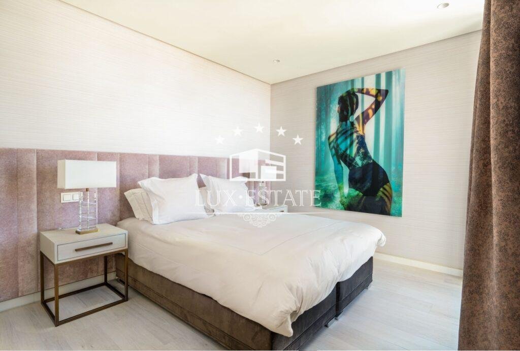 The upper floor, transformed from a 3-bedroom penthouse, boasts a spacious master suite with “his & hers” dressing rooms, two additional well-sized bedrooms, and two bathrooms. A large terrace with a jacuzzi offers breathtaking panoramic sea views. From this terrace, access the amazing 147 m² solarium, complete with a fitted kitchen—perfect for BBQs, long leisurely lunches, or evening dinners as you watch the sunset. There is even space to install a plunge pool, allowing you to cool off on hot summer days after relaxing on your sunbed. Each floor of this exceptional property includes generously sized terraces with sea views. Additionally, the penthouse comes with three indoor parking spaces and two storage rooms.