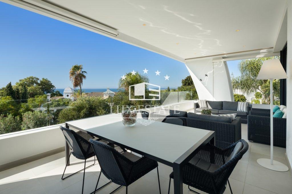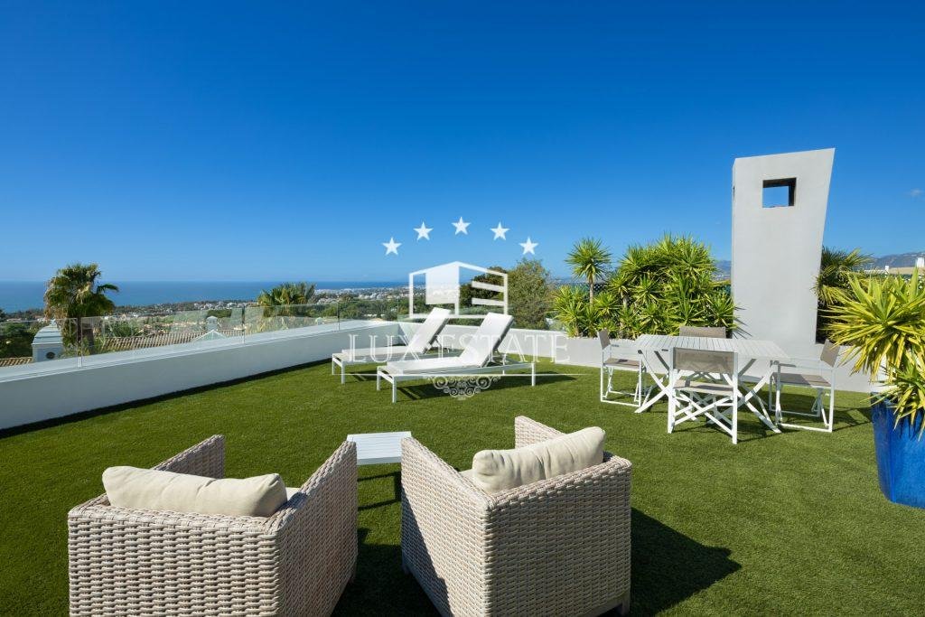 Discover La Reserva, a beautifully presented duplex penthouse in the prestigious residential community of Sierra Blanca, within a short distance to the Golden Mile, Puente Romano and the beach. This is modern luxury apartment located in the eco-friendly community of Reserva de Sierra Blanca, known for extra large duplex apartments, high level of security, manicured communal areas and panoramic sea views. Sitting on a privileged elevated position, this perfectly crafted contemporary estate offers the pinnacle of aesthetic refinement, boasting of spectacular views of the iconic La Concha Mountain, coast, port and Mediterranean Sea all the way to Africa. Welcomed by an expansive open plan living and dining area, expansive terraces and a spectacular solarium, this property provides spectacular panoramic views towards the scenic nature. Complete with a custom designed kitchen by SieMatic, with the use of sleek materials and including high quality appliances. The main level includes 3 generous bedrooms with elegant en suite bathrooms and fitted wardrobes, all boasting of fantastic sea views. The iconic roof top terrace has been totally prepared to be equipped with all luxury features one might need to entertain. A truly magnificent penthouse exuding style and sophistication.