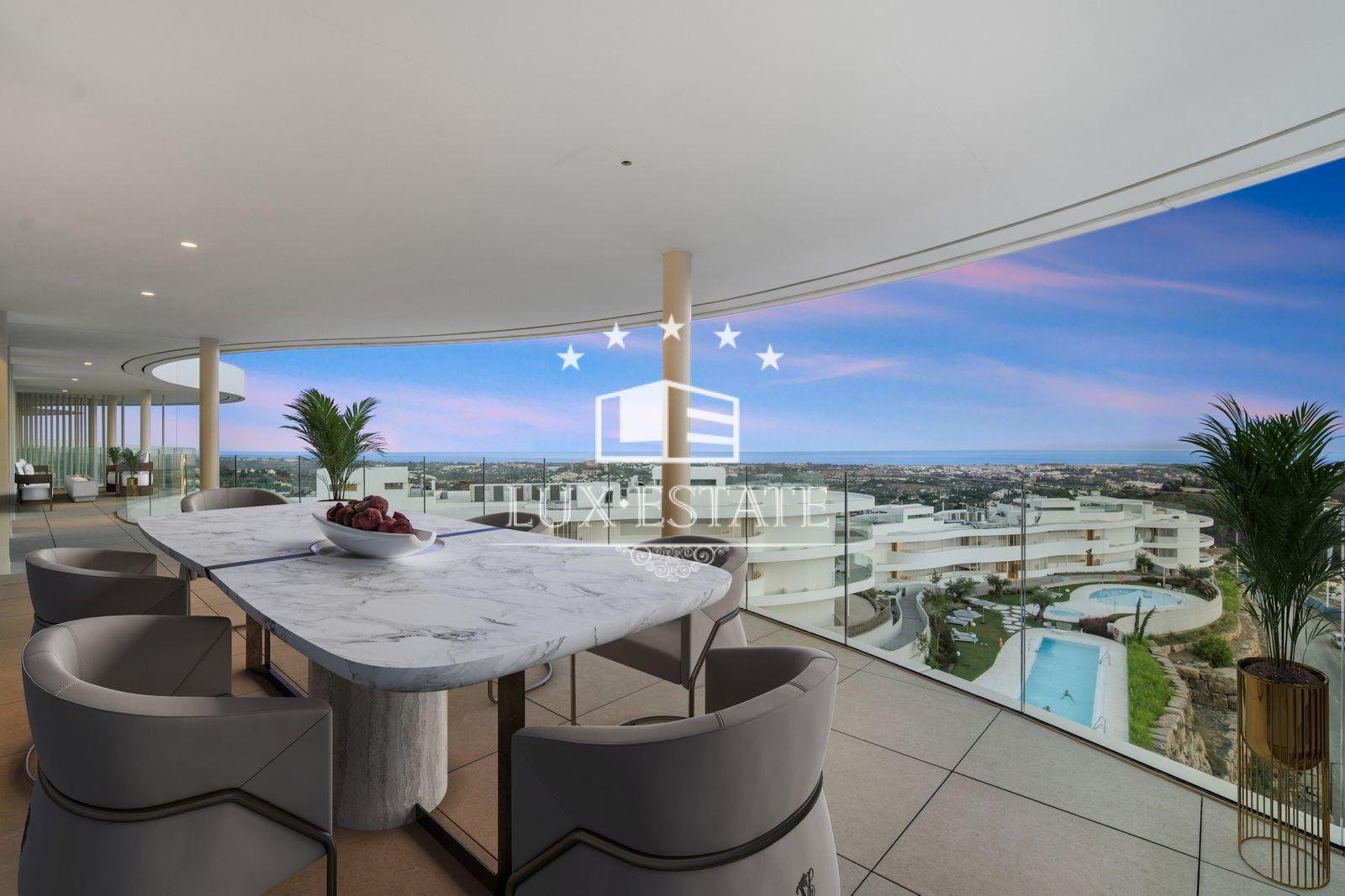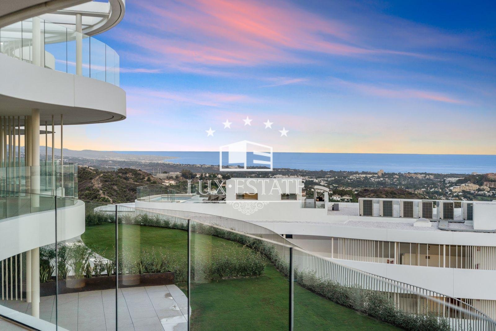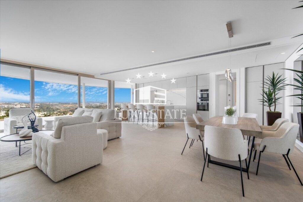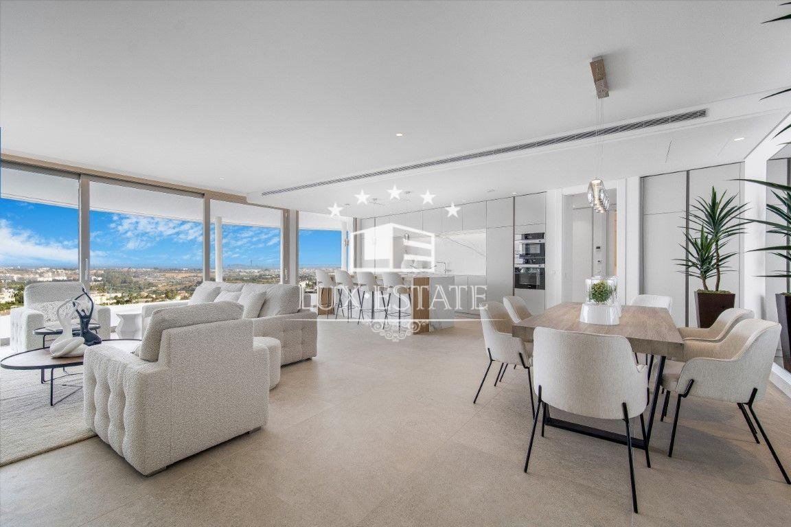 Discover unparalleled luxury in this stunning three-bedroom apartment located within The View, a brand-new, award-winning gated community nestled in the hills of Benahavís, above Marbella’s renowned Golf Valley. This exclusive residence offers breathtaking panoramic views that stretch across the Mediterranean Sea and beyond, all while being just a ten-minute drive to San Pedro and fifteen minutes to Puerto Banús.