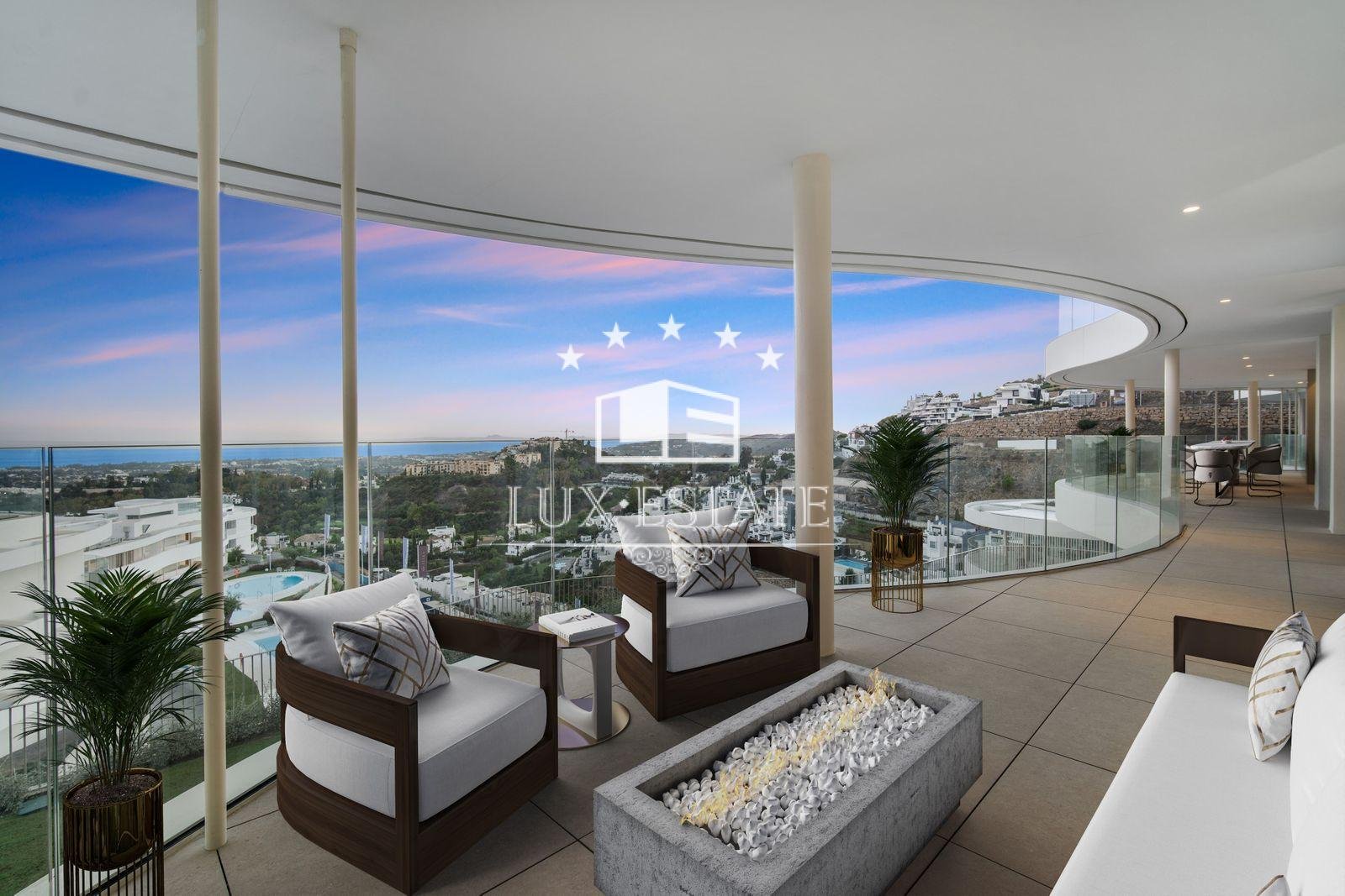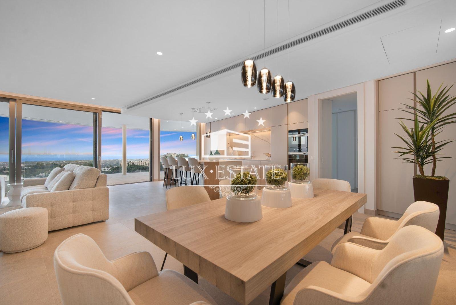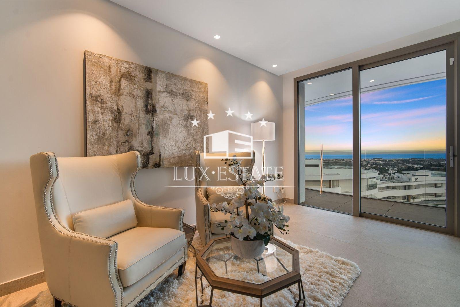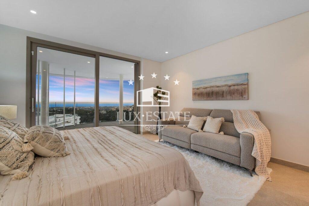 Discover unparalleled luxury in this stunning three-bedroom apartment located within The View, a brand-new, award-winning gated community nestled in the hills of Benahavís, above Marbella’s renowned Golf Valley. This exclusive residence offers breathtaking panoramic views that stretch across the Mediterranean Sea and beyond, all while being just a ten-minute drive to San Pedro and fifteen minutes to Puerto Banús.