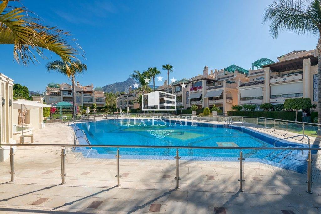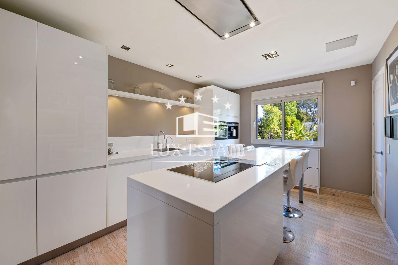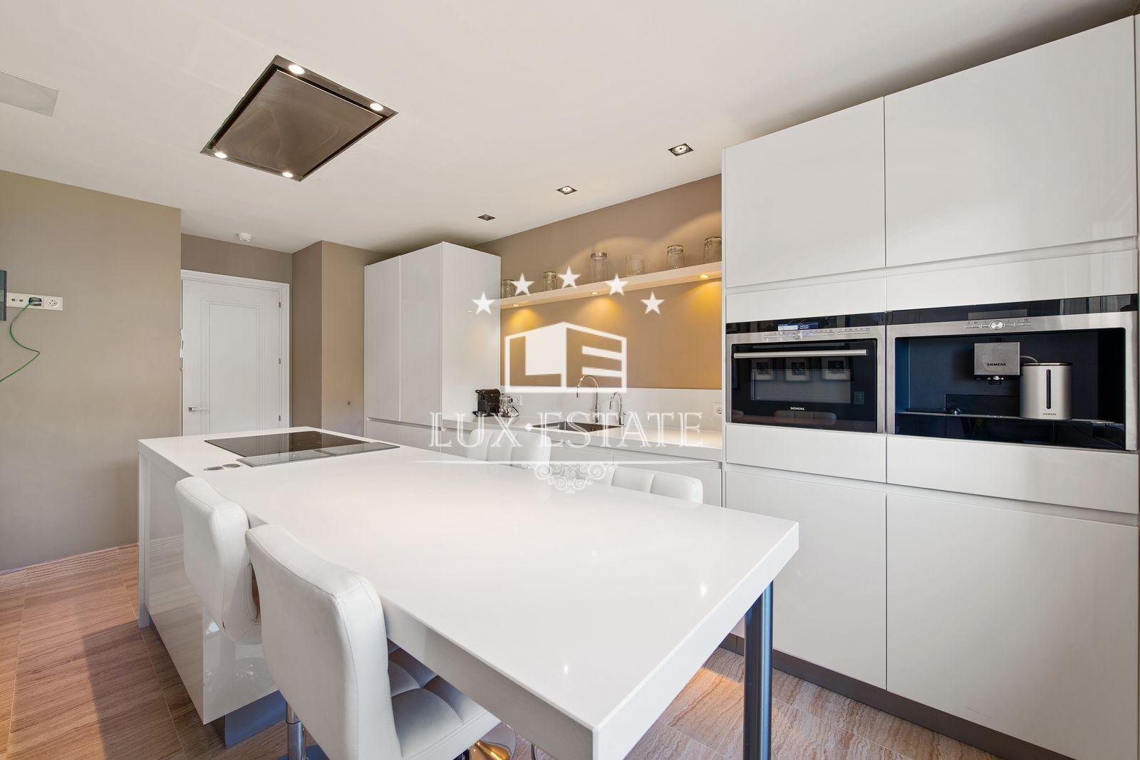 Rio Verde is a luxurious housing development situated on the Golden Mile, just a short distance from Puente Romano. The apartment is positioned on the first floor, and as you step inside, a spacious foyer greets you before leading off to the distinct accommodation areas. To your right, you will find the top-of-the-line kitchen, renovated to the highest possible standards, complete with top-notch appliances such as an integrated coffee maker and a breakfast bar spacious enough to accommodate the whole family. Leading off from the kitchen is a utility room equipped with all the necessary appliances.
