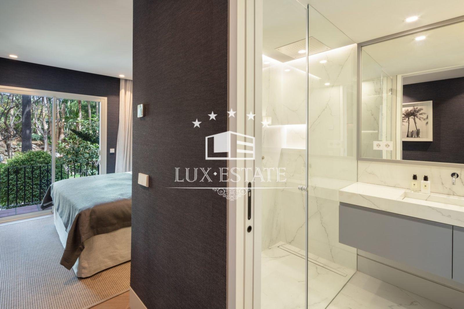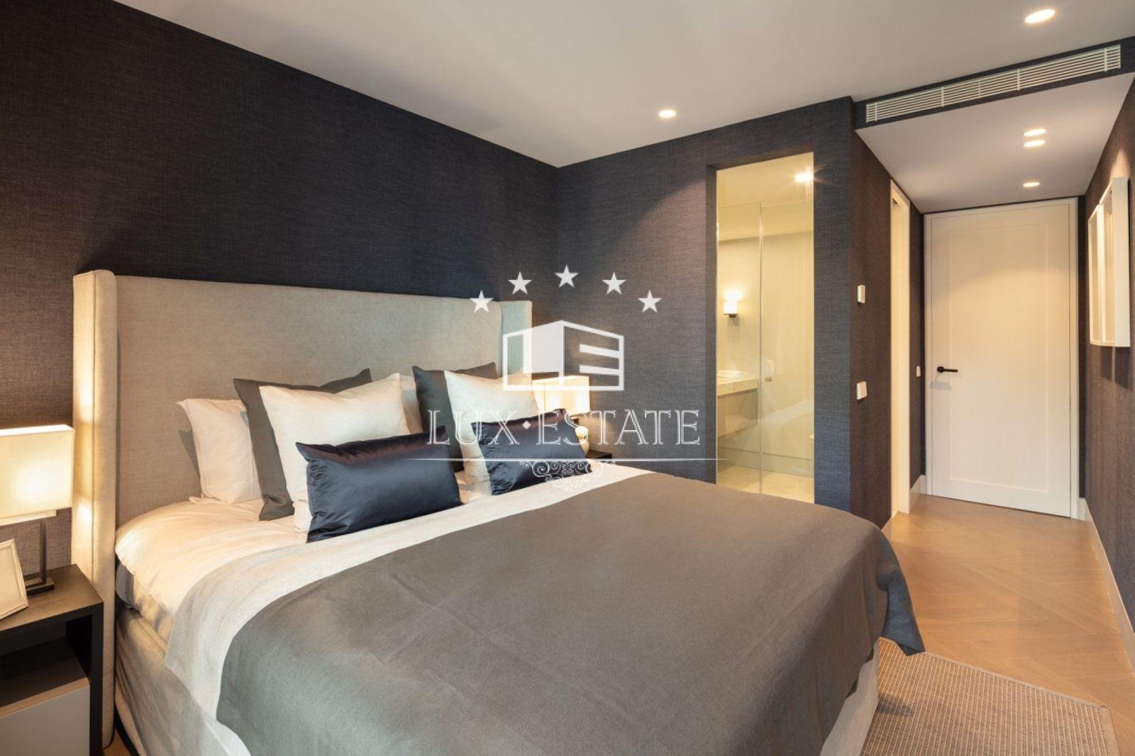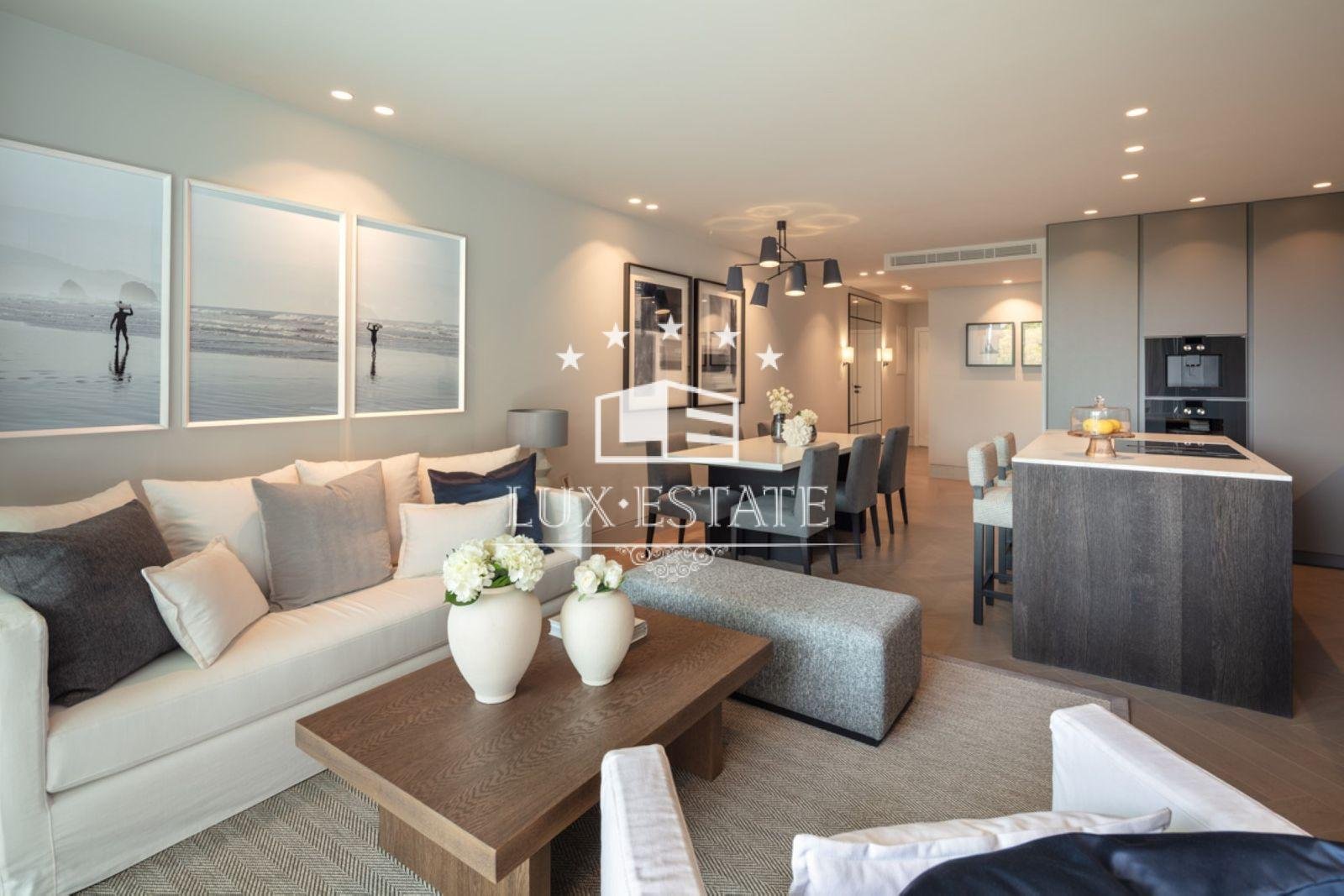 The generously proportioned master bedroom boasts an en-suite bathroom and dressing area, with access to the main terrace. The second bedroom also benefits from an en-suite bathroom and a balcony, while the third bedroom has a separate bathroom.
