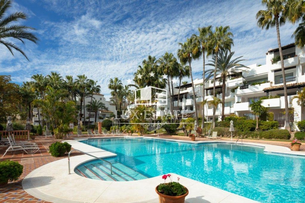 This stunning flat in La Marina de Puente Romano is situated within the renowned Puente Romano hotel complex. It boasts 3 bedrooms and 3 bathrooms, providing picturesque views of the lush tropical gardens.