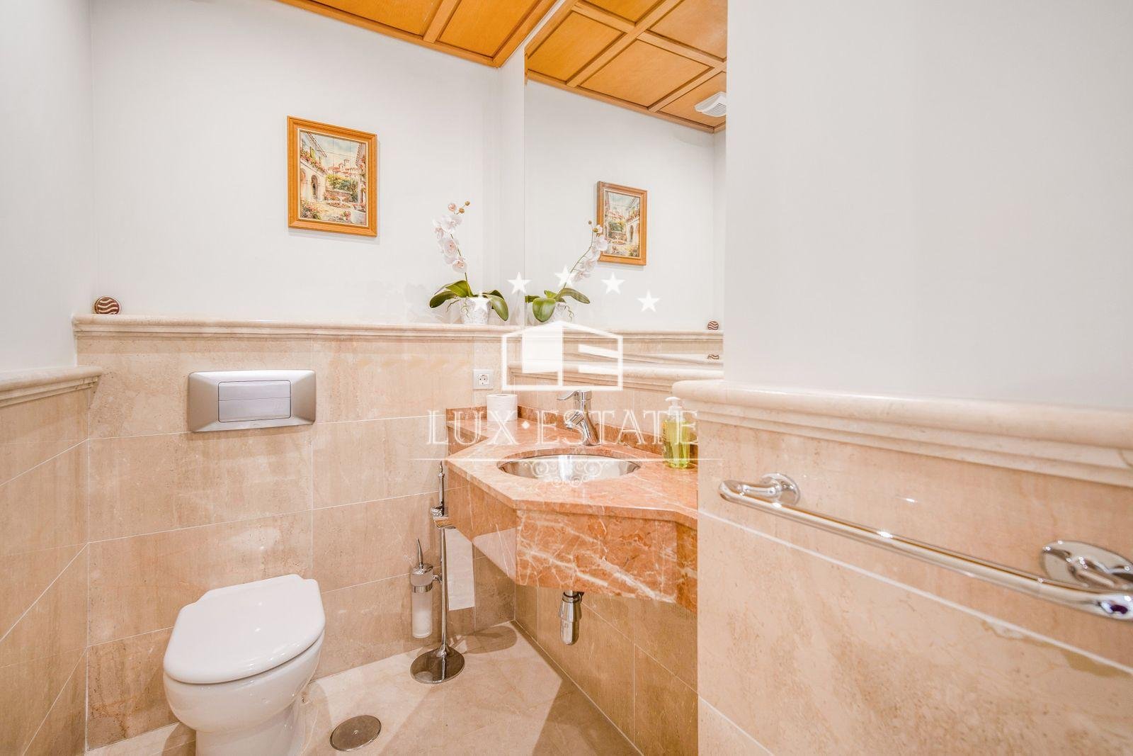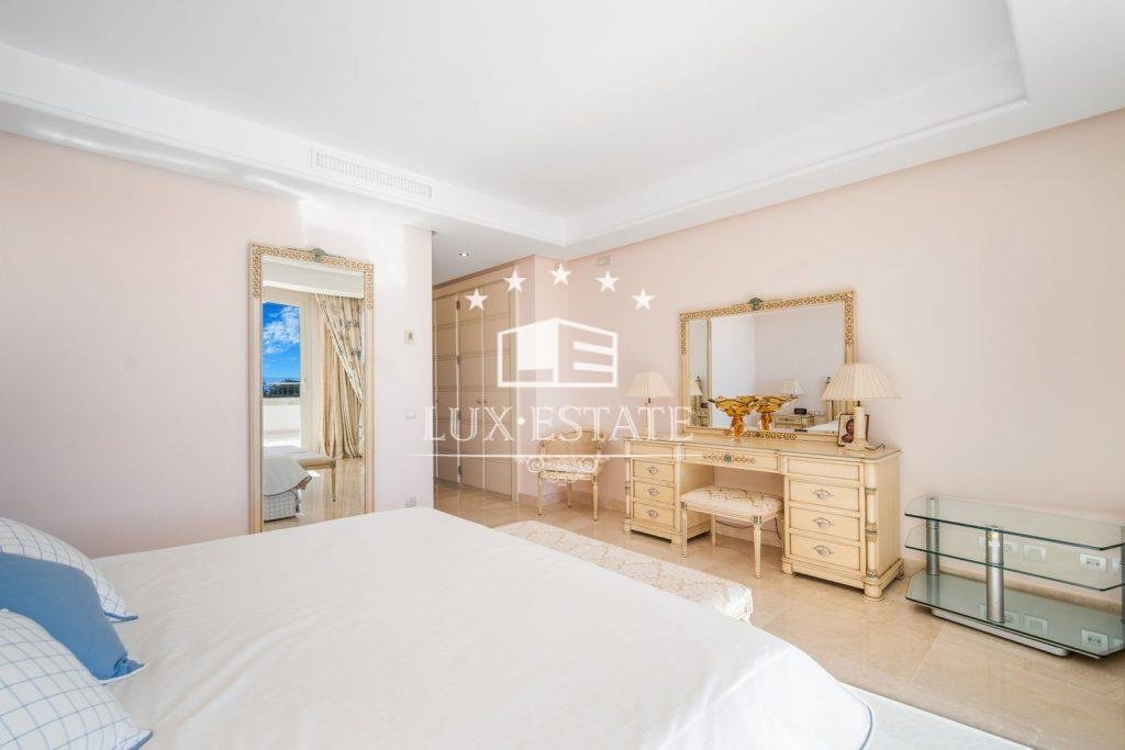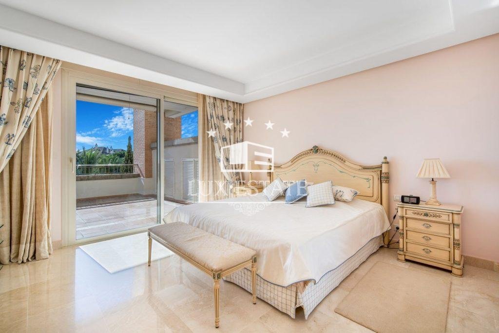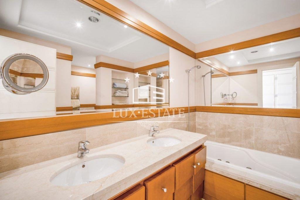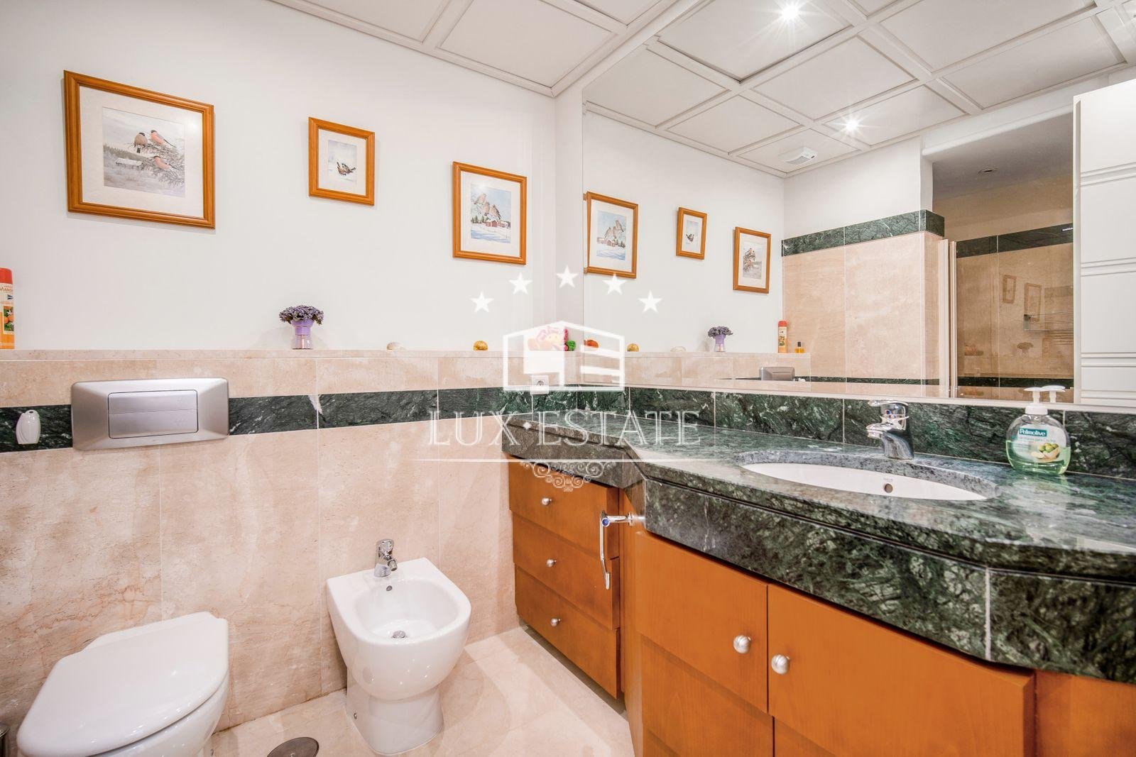 Incredible two-bedroom, south-facing flat in the desirable gated community of La Trinidad, located on the Golden Mile in Marbella. This impressive flat is situated in one of the community’s finest blocks with splendid sea views. La Trinidad provides facilities for residents such as 24-hour gated security; immaculately maintained gardens; communal outdoor swimming pools; an indoor heated pool; fitness centre; sauna; seasonal café, as well as being conveniently close to the beach and surrounded by local amenities. The property comprises of an open-plan living and dining area with access to a private terrace boasting stunning sea and pool views; a fully-equipped kitchen with a separate laundry area, two bedrooms, each with an en suite bathroom and access to the terrace, and a guest toilet. Additional features include hot and cold air conditioning, marble flooring, private parking, a storage space, and electric shutters.