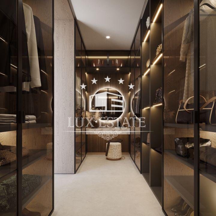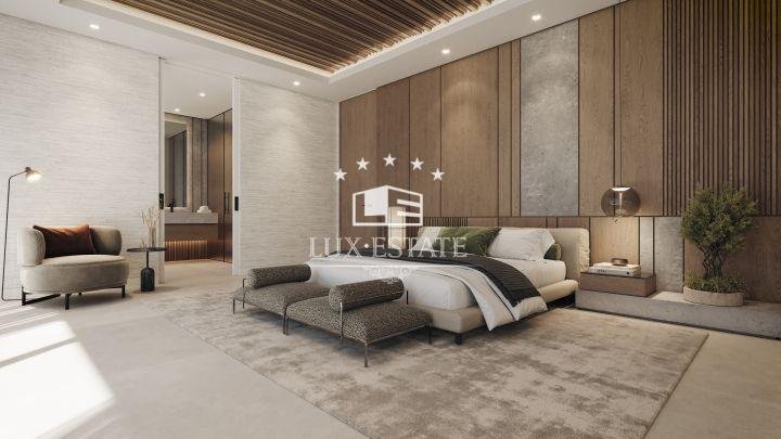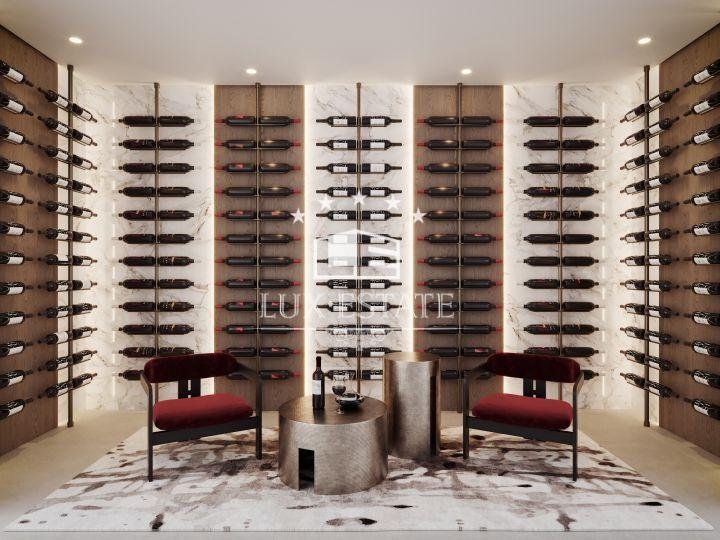 Indulge in the epitome of sophistication with an infinity pool and sunken chill-out area, perfect for entertaining or unwinding. Expansive terraces provide an idyllic backdrop for outdoor dining and relaxation, offering sweeping views of the landscape and golf course. The solarium elevates the experience with its own pool, chill-out area, and kitchenette, all designed to capture the sun’s warmth.