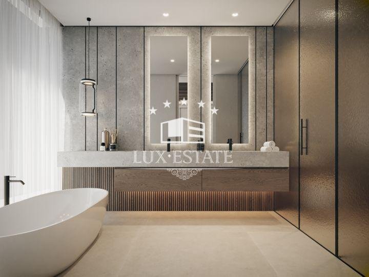 Seamlessly blending indoor and outdoor living, the ground floor offers direct terrace access from every room. Modern interiors are tailored to perfection, with an open-plan layout seamlessly connecting the kitchen, dining, and living spaces. A guest bedroom on this level adds convenience. Upstairs, two guest bedrooms with private bathrooms accompany a luxurious master suite featuring a walk-in closet, lavish bathroom, and terrace access.