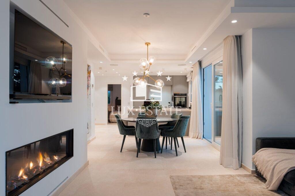 Completely renovated in 2019, this exceptional residence blends contemporary Scandinavian-inspired design with enduring quality. With 163 m² of interior living space and two expansive terraces, the property captures sweeping views of the Mediterranean Sea, the mountains, and the beautifully maintained community pool—creating a serene, sophisticated setting perfect for coastal living.