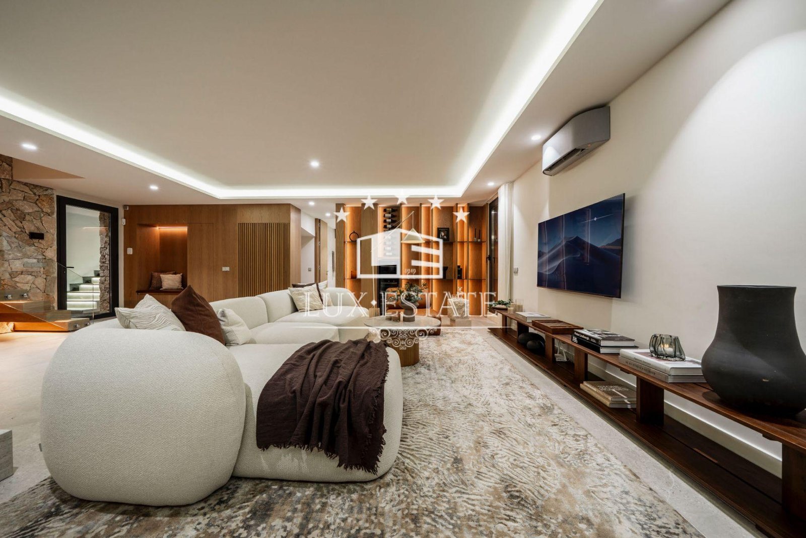The lower level includes a fully self-contained apartment with its own entrance, bathroom, and lounge opening onto a private terrace. This space is perfect for visiting guests, older children, or as a potential rental, providing additional income while preserving the main home’s privacy.