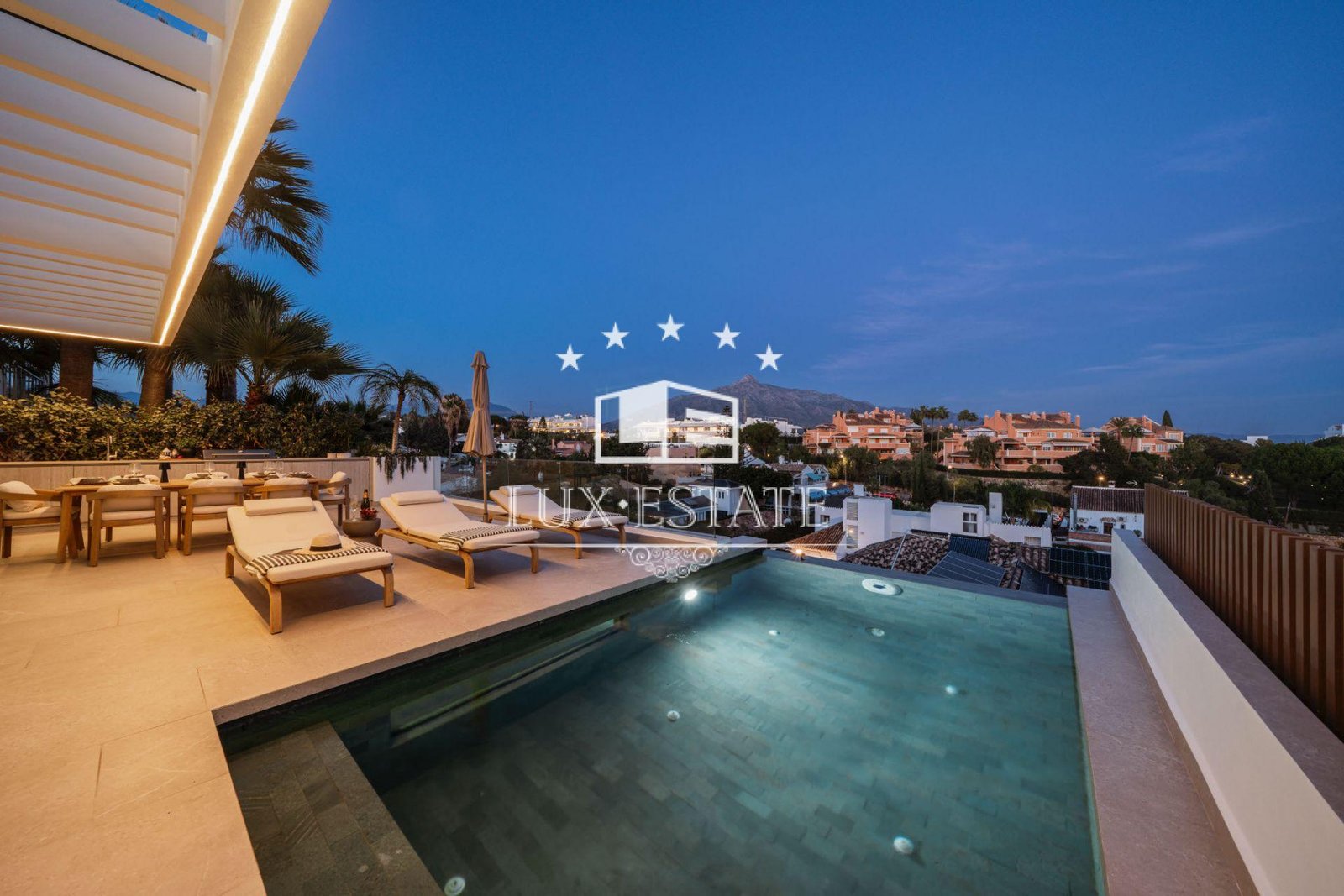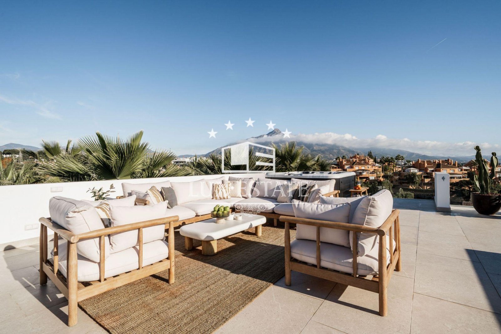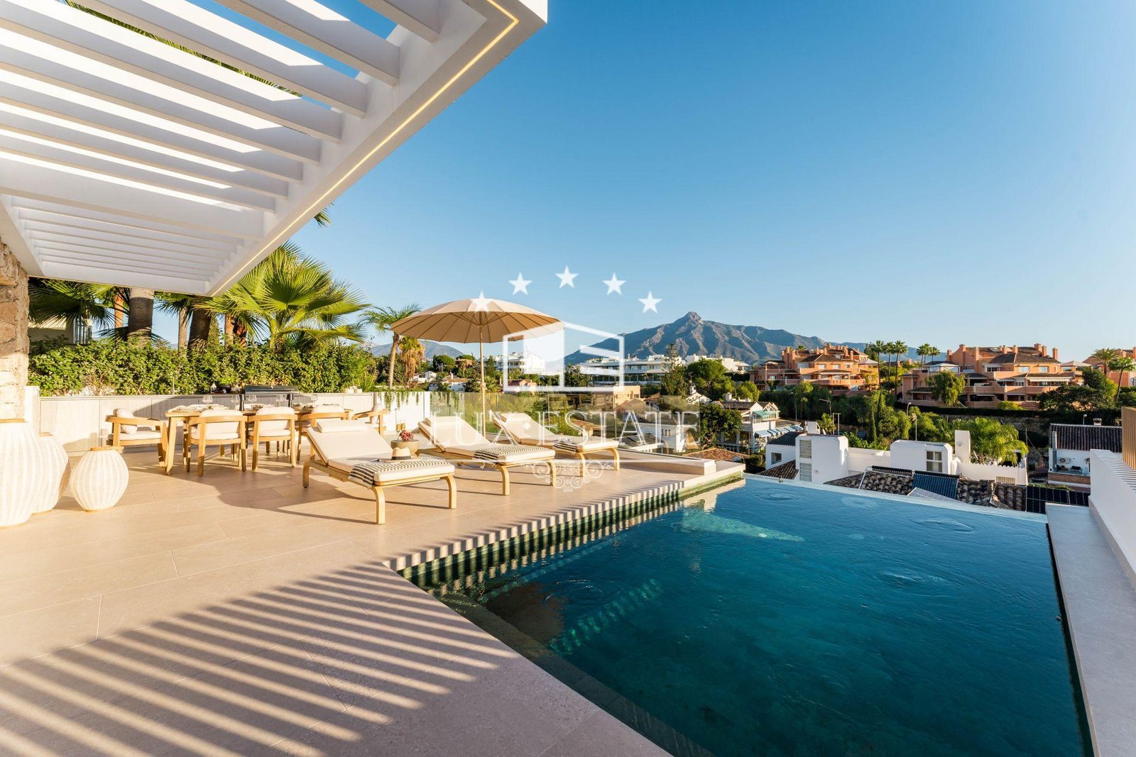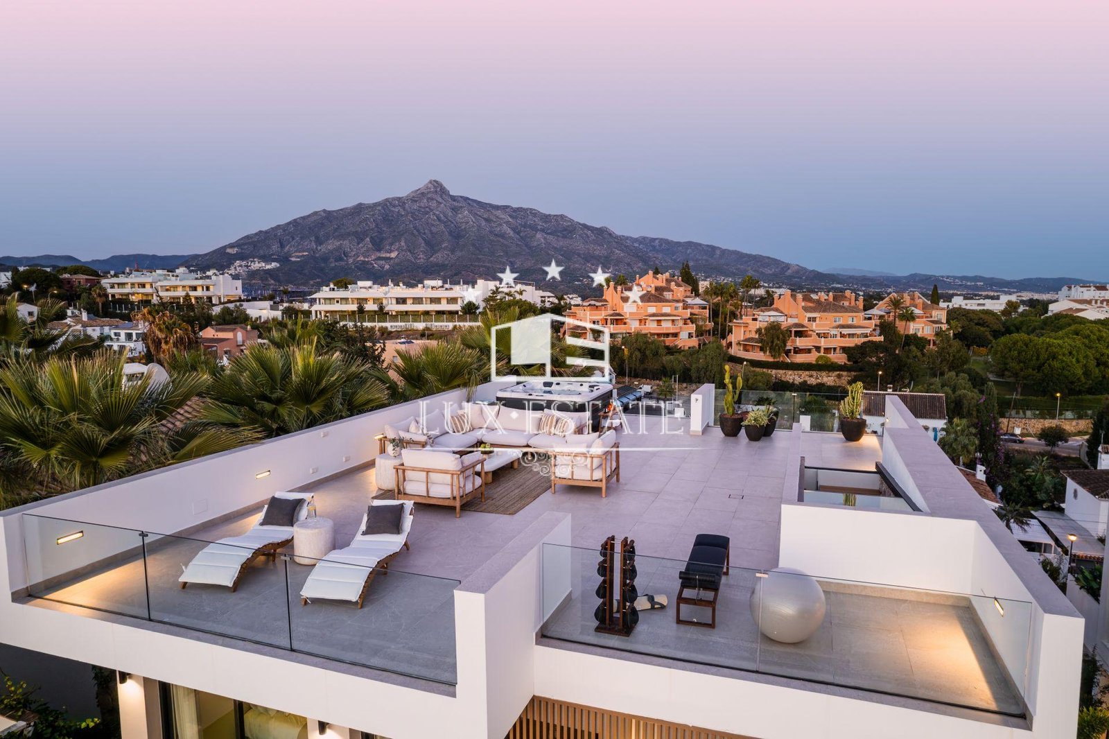 Discover Villa Tulua, a design-led luxury villa for sale in the coveted Nueva Andalucía. Perched on an elevated ridge, it offers unrivalled panoramic views—from the iconic La Concha mountain in the east to Gibraltar and unforgettable sunsets in the west. Fully renovated across three levels, this residence arguably boasts some of the most spectacular vistas in the area.