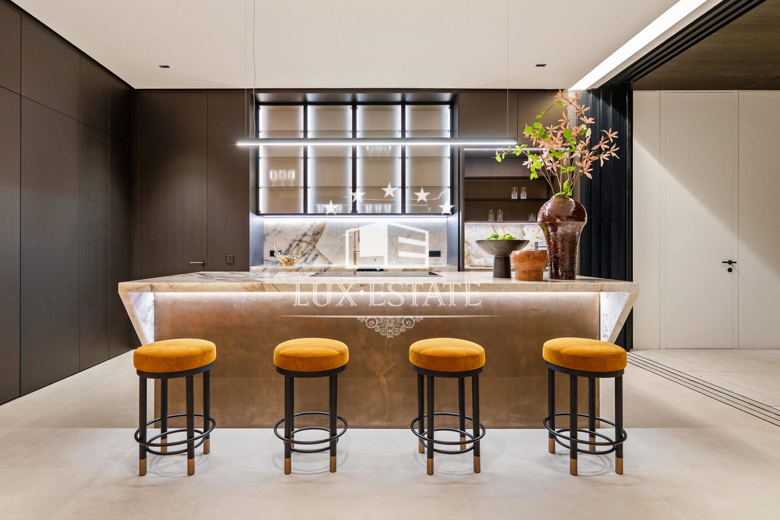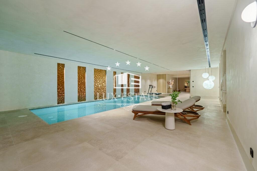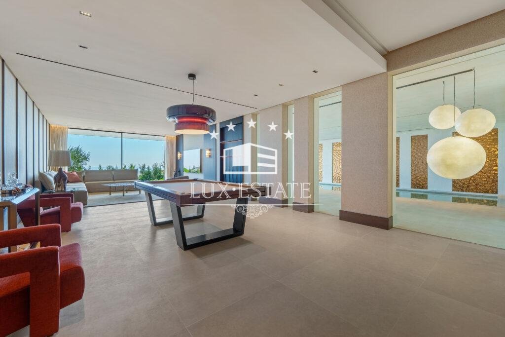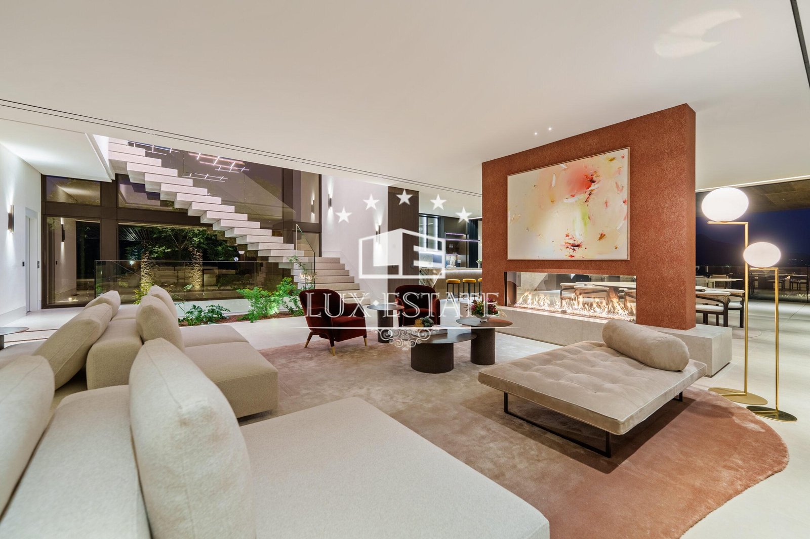 The upper floor is home to three more luxurious en-suite bedrooms, including a spectacular master suite of over 70 m², complete with a walk-in dressing room, spa-inspired bathroom, and a private terrace with jacuzzi offering uninterrupted views.The lower level of the villa opens up nearly 800 m² of meticulously designed living and leisure space. Here, you’ll find multiple entertainment lounges, a cinema room, games area, fully equipped gym, and an indulgent indoor spa featuring a pool and jacuzzi, all bathed in natural light thanks to the intelligent architectural layout.