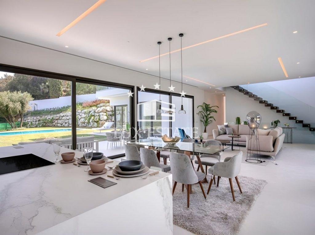 Carefully designed landscaping creates a private and peaceful sanctuary in the garden and pool area. Enjoy sun-soaked and shaded terraces at any time of the day with the property’s magnificent East, South, and West orientations. This villa, situated on a spacious 1,600-square-metre plot and embellished with premium finishes, has been thoughtfully crafted to elevate family and social life. Revel in the tranquility of your own secluded haven and submerge yourself in the warm embrace of nature from every nook and cranny of your abode.