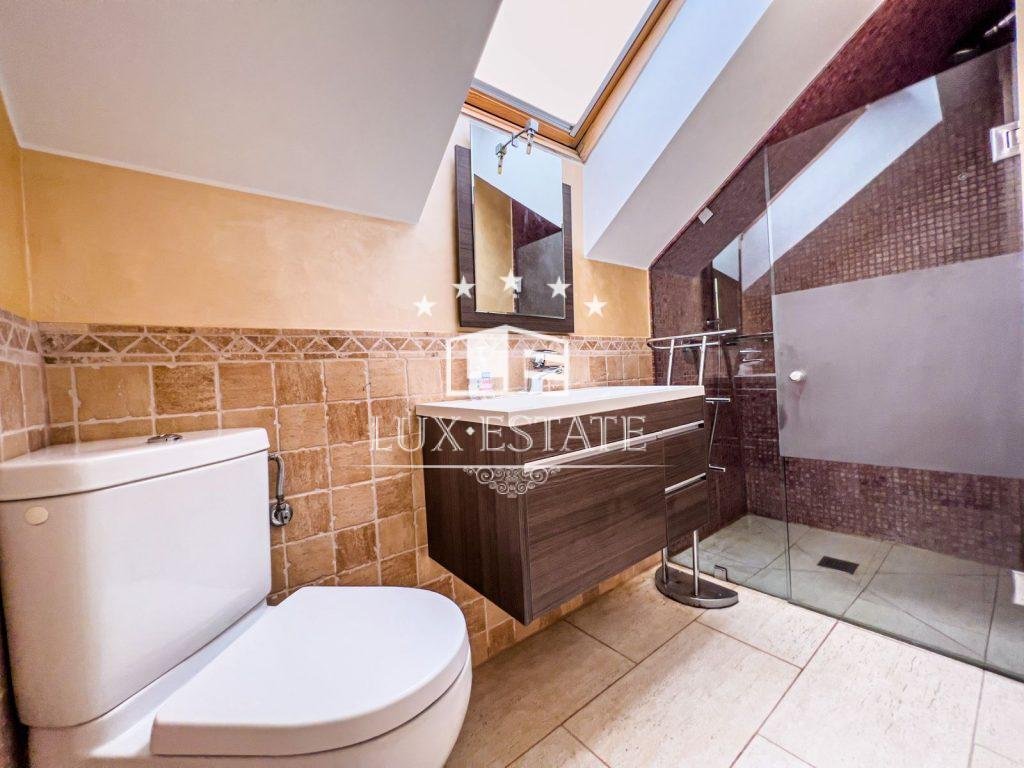 The centerpiece of this coastal retreat is undoubtedly the private pool area, situated a short distance from the sea. The pool offers a tempting respite in which to cool off, while the sun-drenched terrace invites you to soak up the warm coastal sun. Take pleasure in the gentle sea breeze as you unwind in the poolside cabana, allowing moments of peacefulness amidst the beauty of the coast.