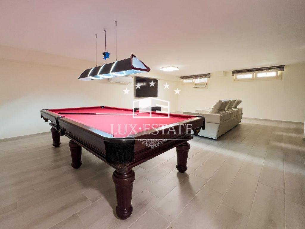 For those looking for some entertainment, there is a well-equipped games room that offers a wide range of options for friendly competitions and relaxing family get-togethers. The exclusive bar, which is stocked with a variety of premium spirits, transforms into a social hub where you can create and enjoy signature drinks while taking in the rolling waves in the background.