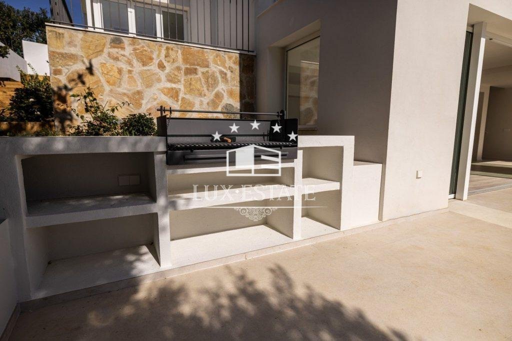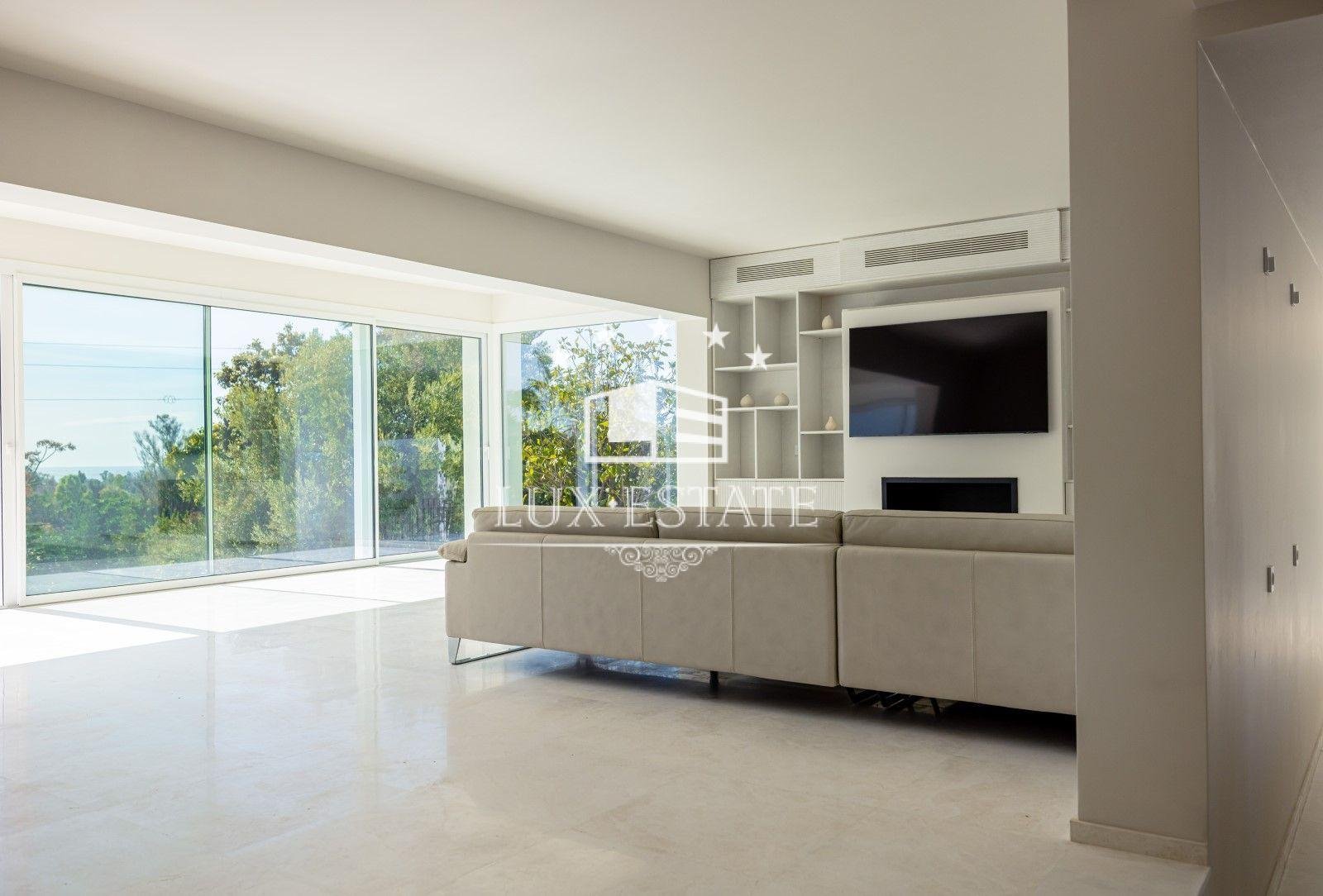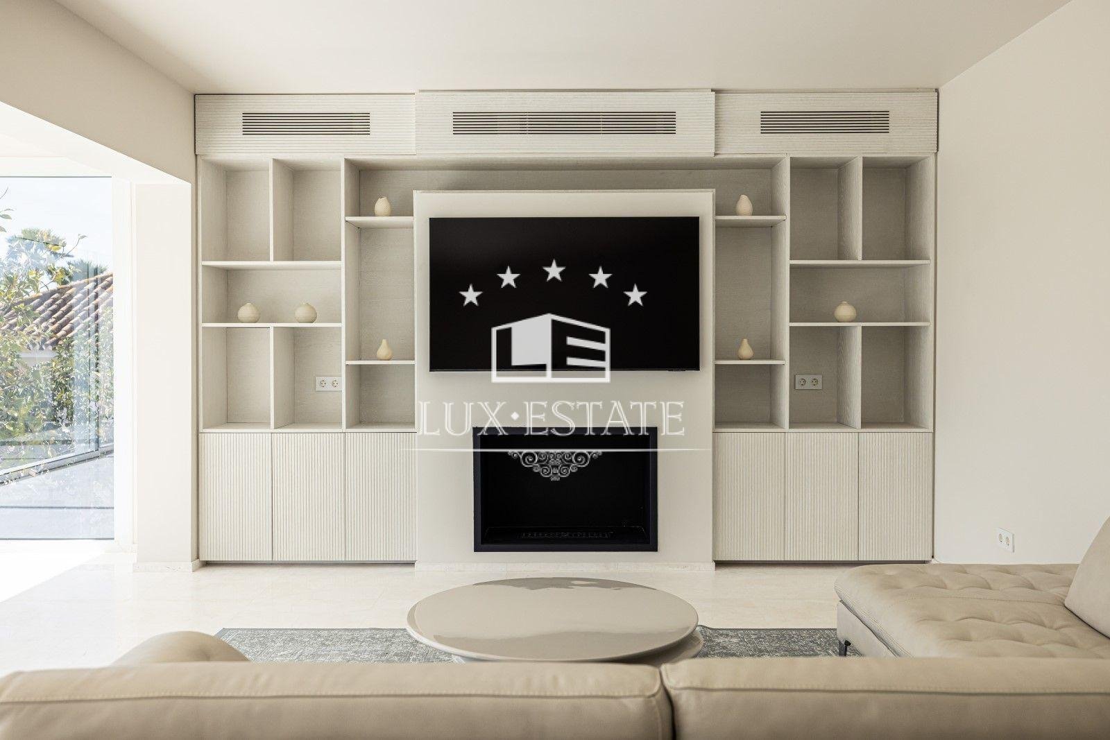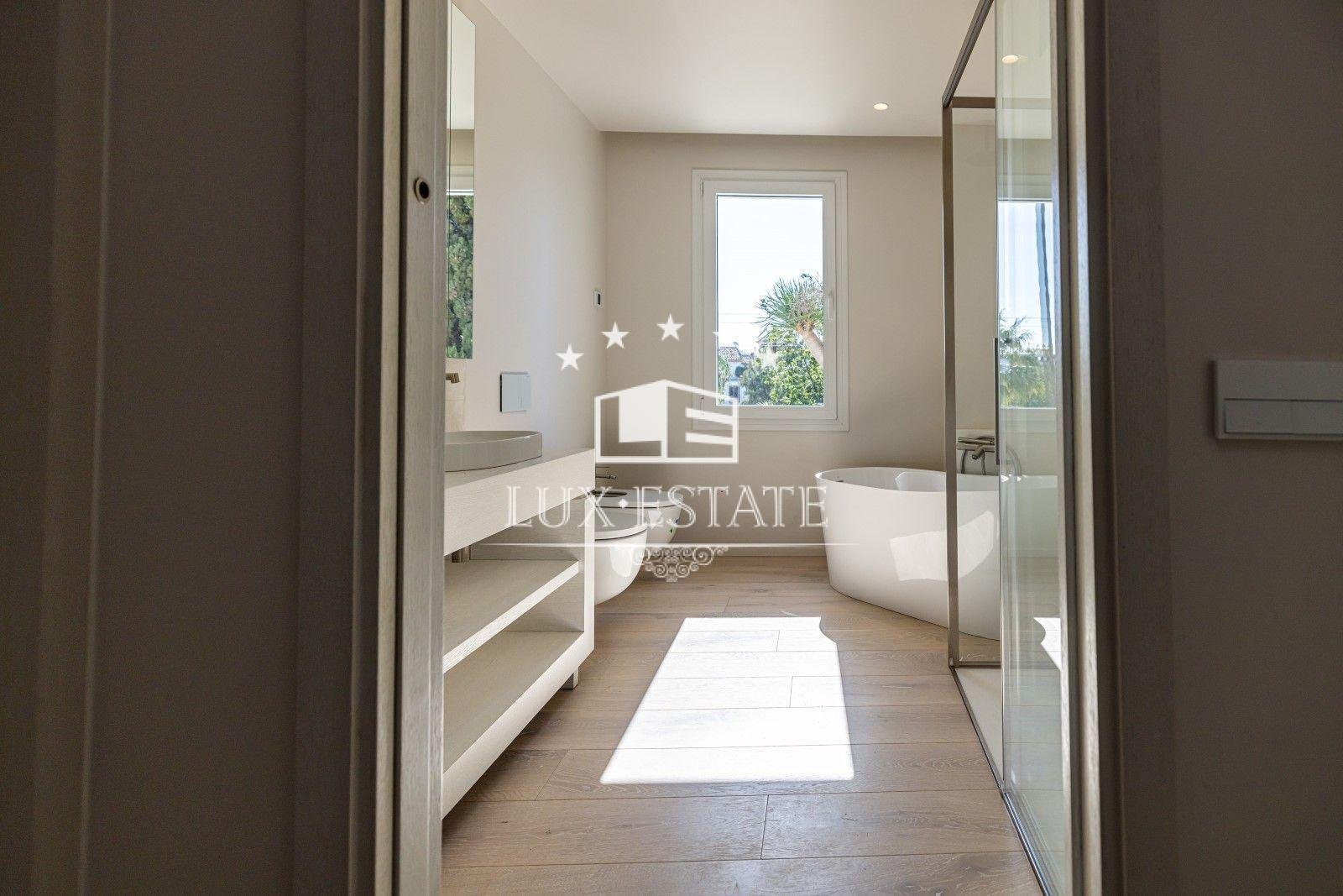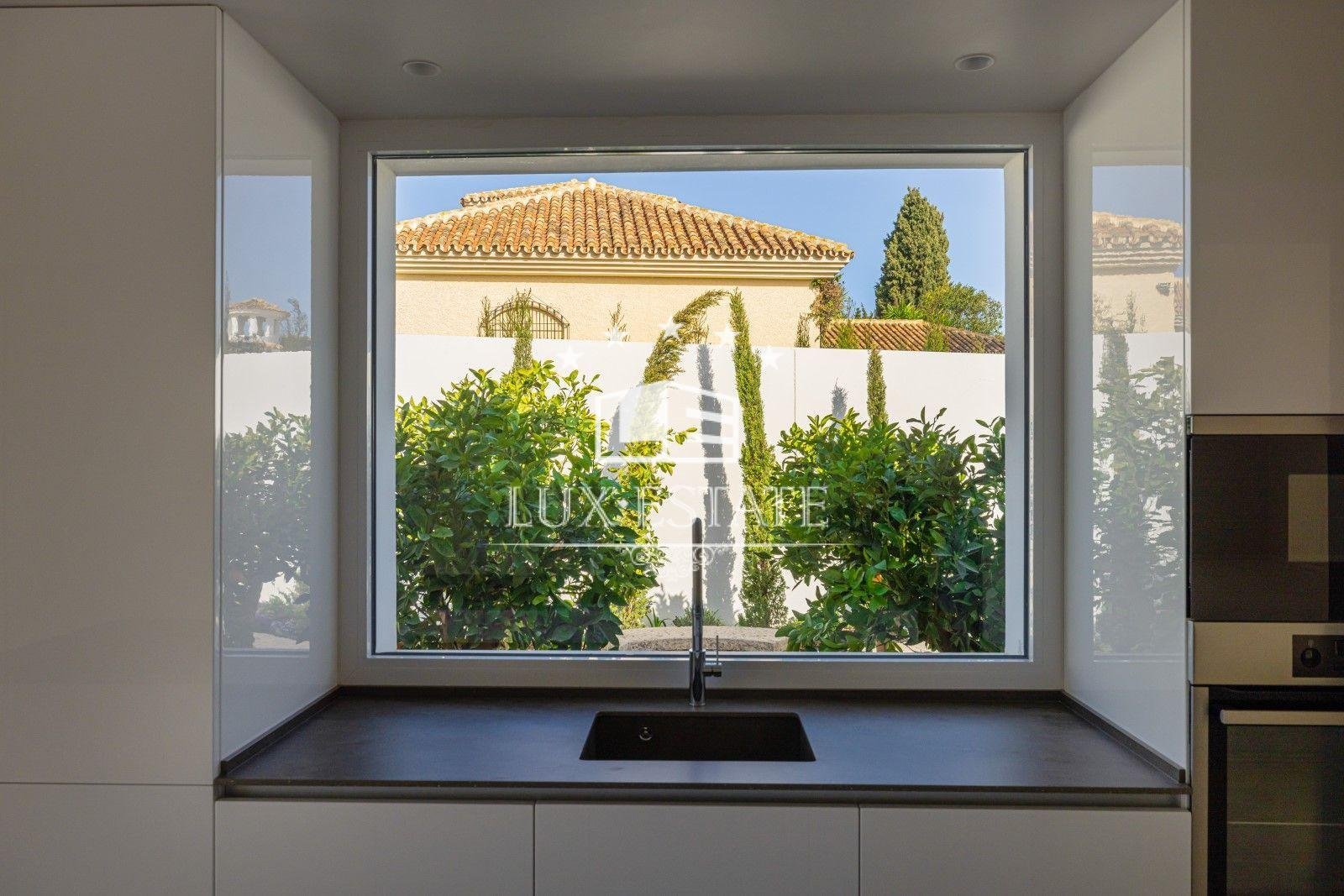 Beautiful fully refurbished south-facing Mediterranean-style villa with direct access to the Guadalmina Alta golf course. The spacious and verdant garden features a pool with a relaxation area. The entrance porch leads to a bright living-dining room, a high-end kitchen, a utility room, and a separate dining area with terrace access. This level includes three bedrooms – the principal one with a dressing room and bathroom, the second with an en-suite bathroom, and a guest toilet. From the lounge, there is an internal staircase that directly leads to the solarium. Additionally, there is an external staircase that leads to the terrace of the master bedroom and the outdoor swimming pool. It is also feasible to access the pool through an internal staircase that leads to a spacious multipurpose area that can be utilised as a games room or gymnasium with direct access to the pool and a toilet. Attached to the house, there is a fourth bedroom with its independent access from outside. This is a double bedroom with an attached dressing room and bathroom. It boasts direct access to the garden and car parking for two vehicles. The room is equipped with A/C, underfloor heating, home automation systems, house-wide WIFI installation, and solar panels. With breathtaking views of the golf course, mature garden, and the sea, it presents an unparalleled opportunity. Not to be missed, this villa has been fully modernised by the esteemed Barmi Architect Studio of Marbella.