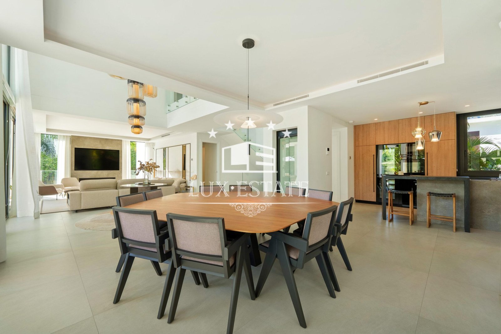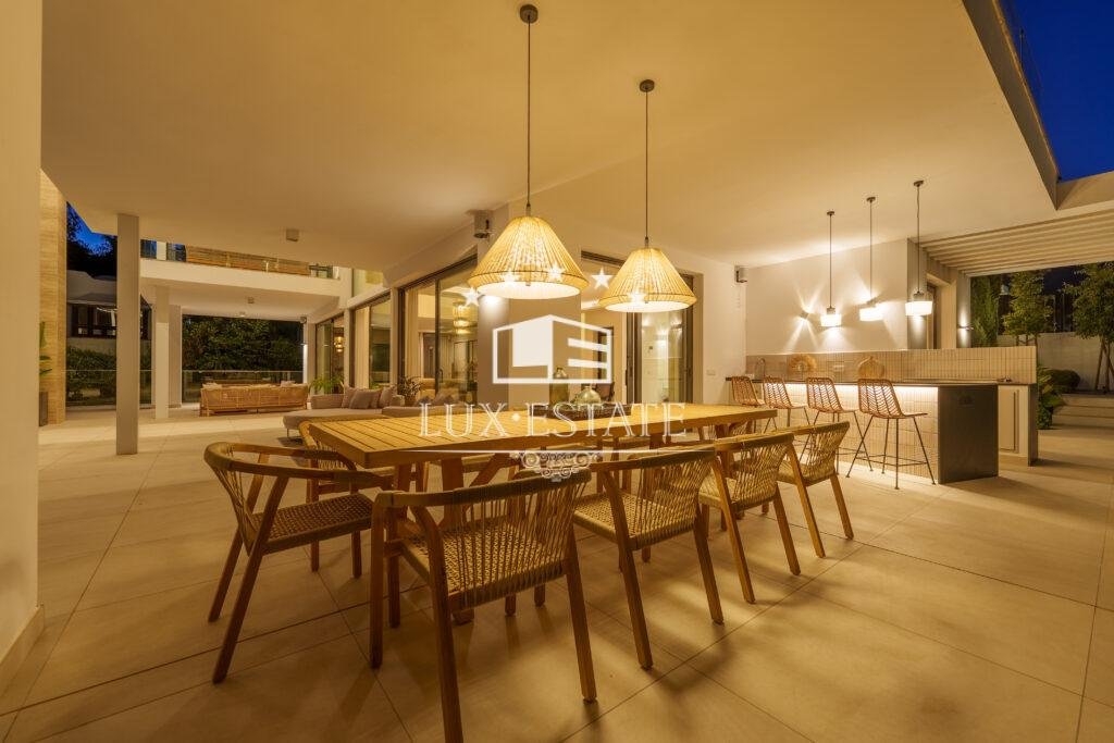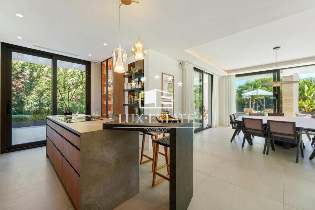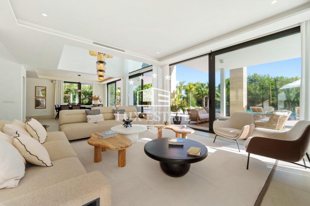 Designed to embrace light and space, the villa features expansive floor-to-ceiling windows and seamless indoor–outdoor living areas that capture the essence of the Costa del Sol. The open-plan living spaces flow effortlessly from a stylish lounge and designer kitchen to refined dining and entertainment areas, ideal for both everyday living and hosting guests.