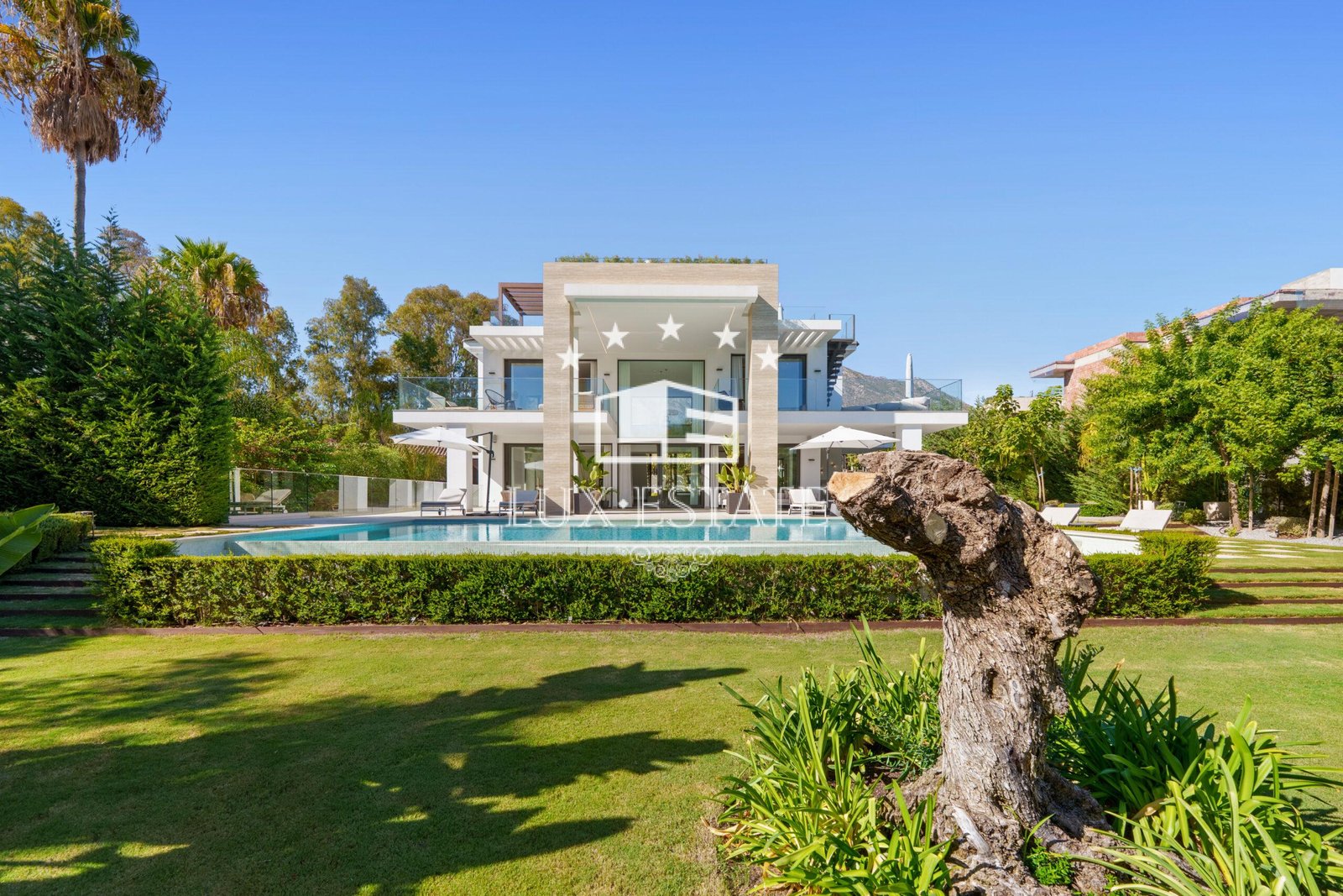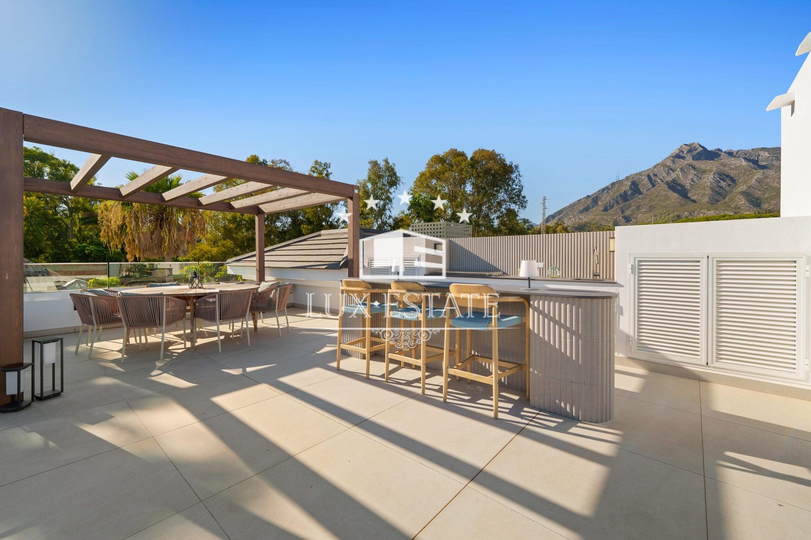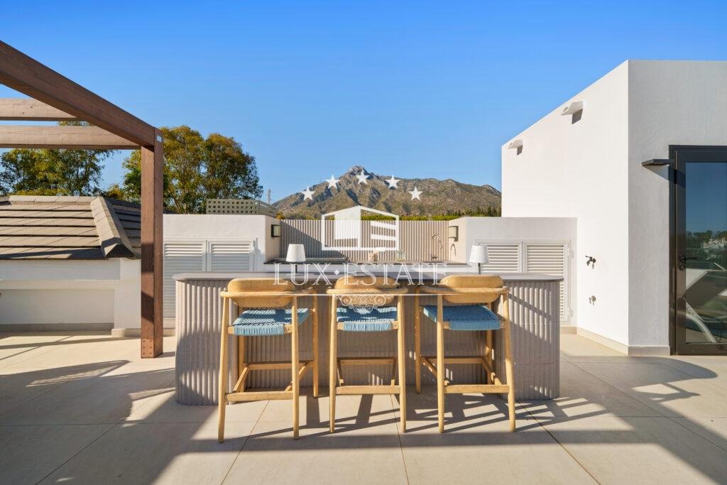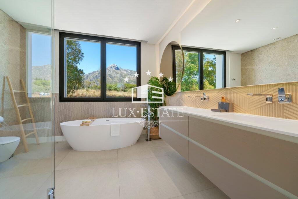 Each bedroom is a luxurious sanctuary with its own en-suite bathroom, while the impressive master suite stands out with a spa-style bathroom featuring a freestanding bathtub and stunning views of La Concha mountain. Outdoors, the villa offers multiple terraces, a spectacular infinity pool, and a rooftop chill-out area with Jacuzzi—perfect for relaxing or entertaining under the Marbella sun.