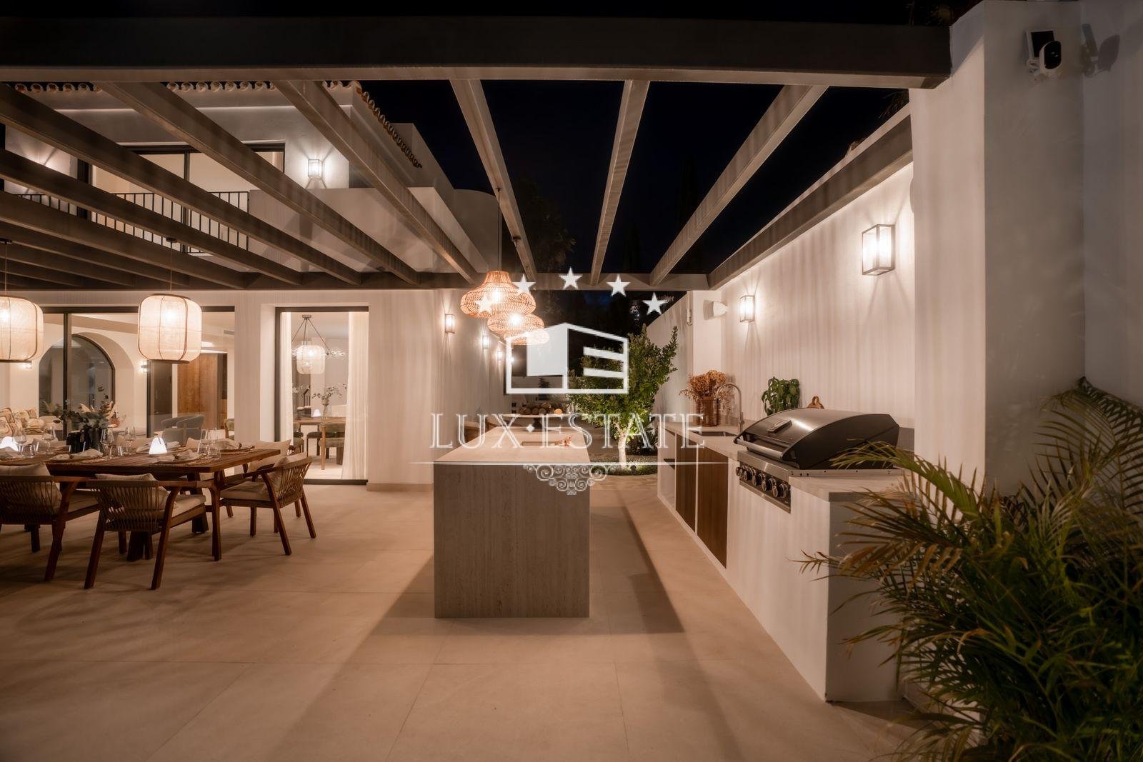 Designed for refined living, the villa features six spacious en-suite bedrooms and a sleek Swedish-designed kitchen equipped with premium Miele appliances. Comfort is ensured year-round with underfloor heating throughout, Daikin air conditioning with Airzone control, and carefully selected high-quality finishes. The home also includes a private spa area with a Finnish sauna, hammam, and large soaking bathtub, along with a private cinema room, two guest toilets, and two private parking spaces.