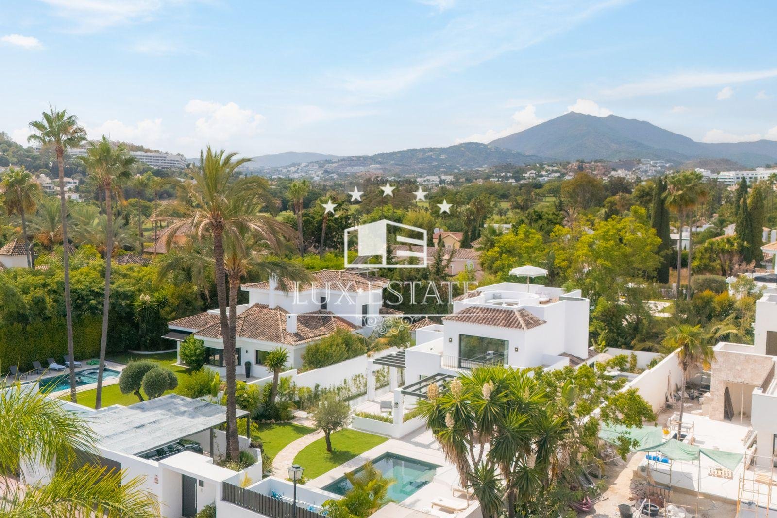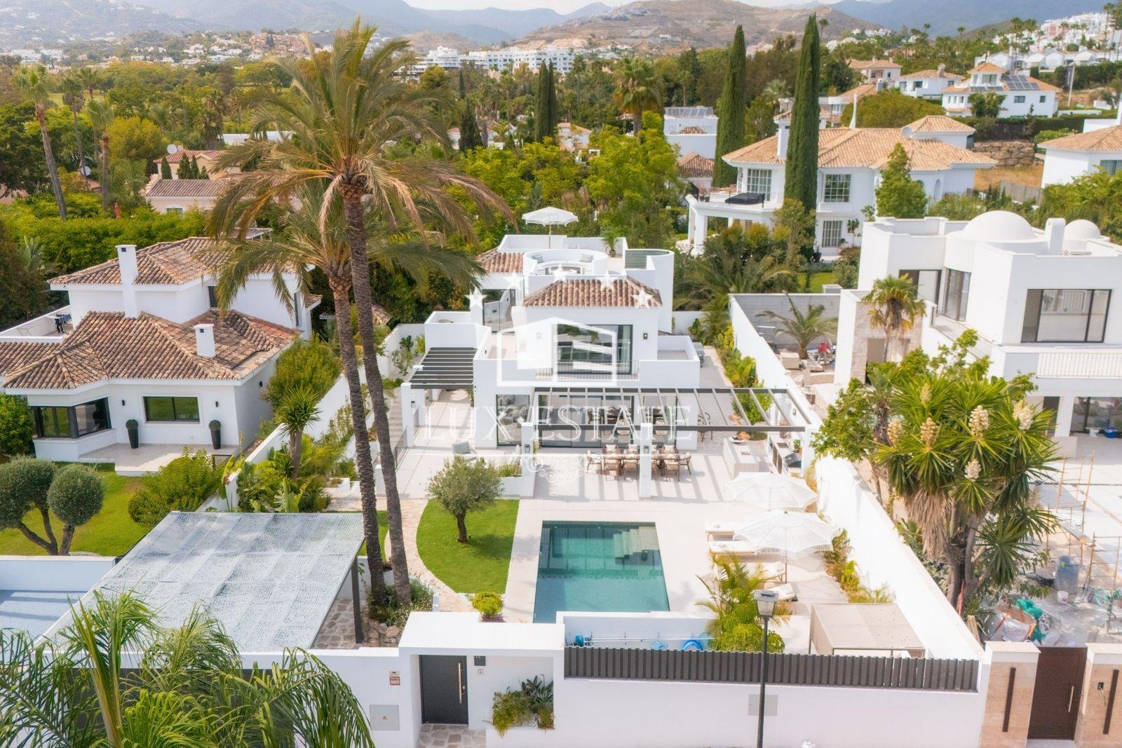 This exceptional modern villa is ideally located in the heart of Marbella’s renowned Golf Valley, offering an outstanding combination of privacy, space, and convenience. Set on an 820 m² plot, the property provides 600 m² of built living space complemented by 125 m² of sun-filled terraces, all just minutes from Aloha Golf, Los Naranjos, and Las Brisas Golf Club, as well as shops, restaurants, and Puerto Banús.