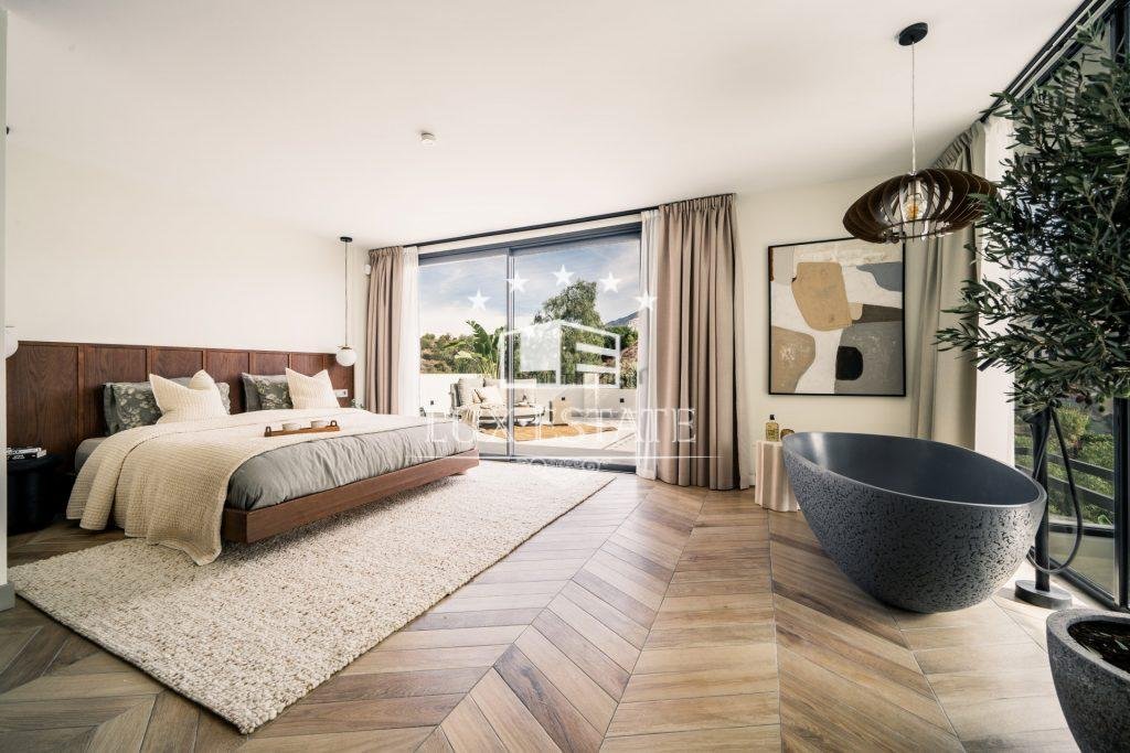 Villa Tira is a beautifully refurbished residence situated within a prestigious gated community in Nueva Andalucía. Housing 5 bedrooms and 5 bathrooms, it provides ample space for both family and visitors. Its exceptional views of the sea and mountains offers a serene and natural ambiance. The villa boasts a private swimming pool, sauna and a home cinema for leisure activities. Furthermore, it offers an exquisite wine cellar for avid wine connoisseurs. It provides a luxurious and comfortable lifestyle, with convenient access to nearby facilities and the exclusiveness of a gated community.