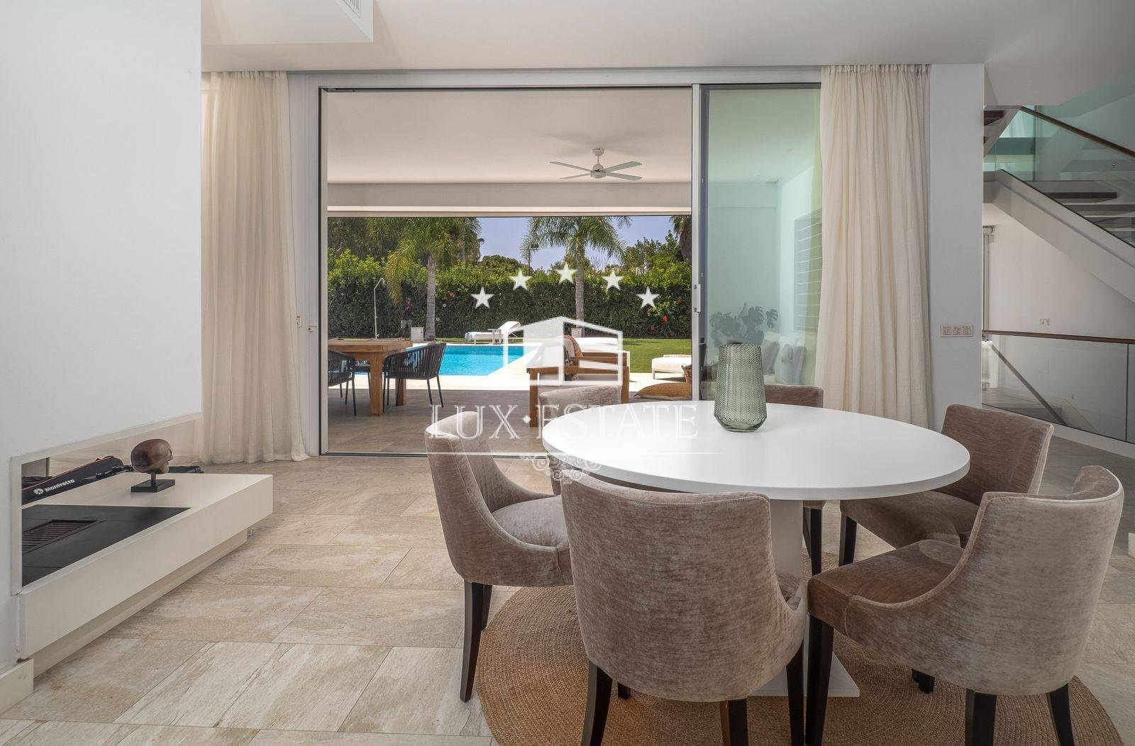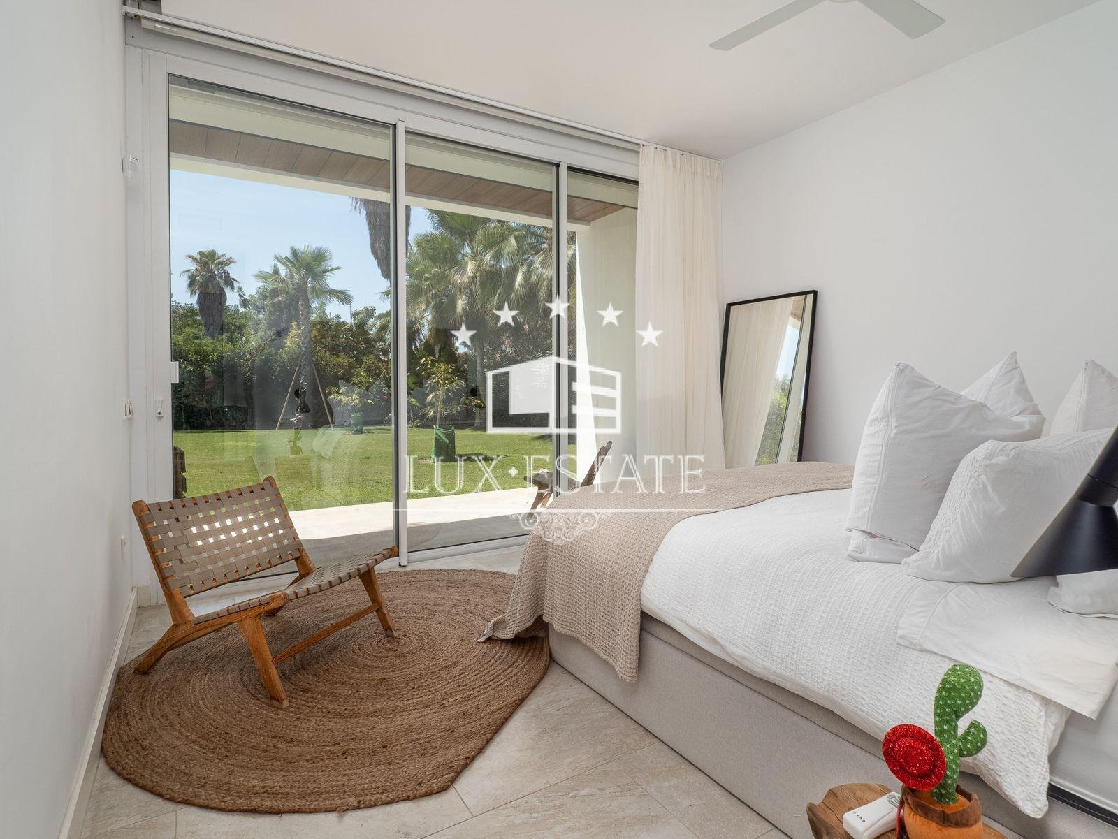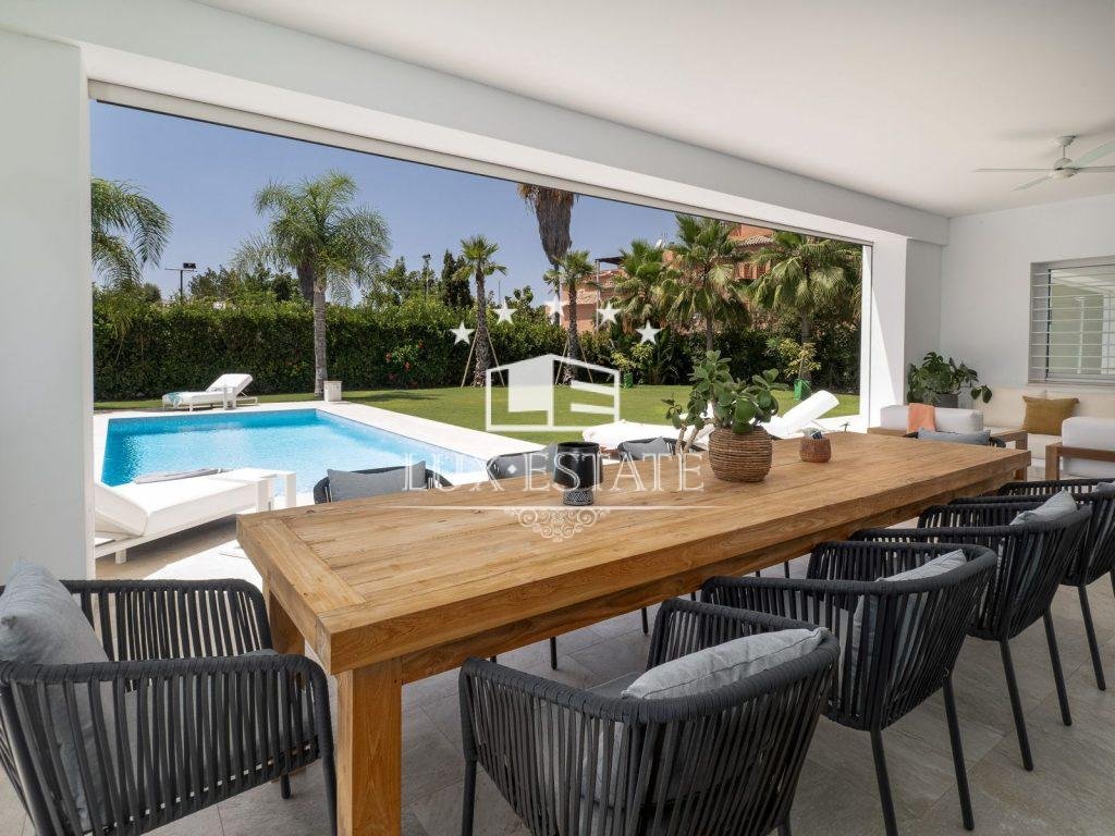 Immaculate home in an enviable location on a level plot, situated in the beachfront neighbourhood of Casasola, adjacent to Guadalmina Baja and accessible on foot from the beach. The property is a detached Ibiza-style house featuring a private pool.