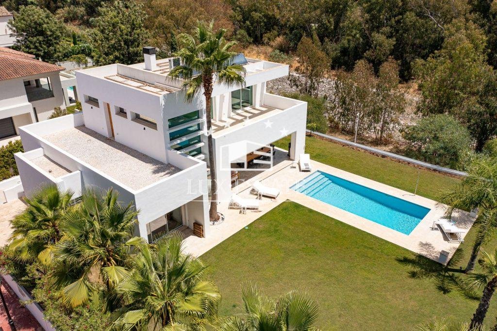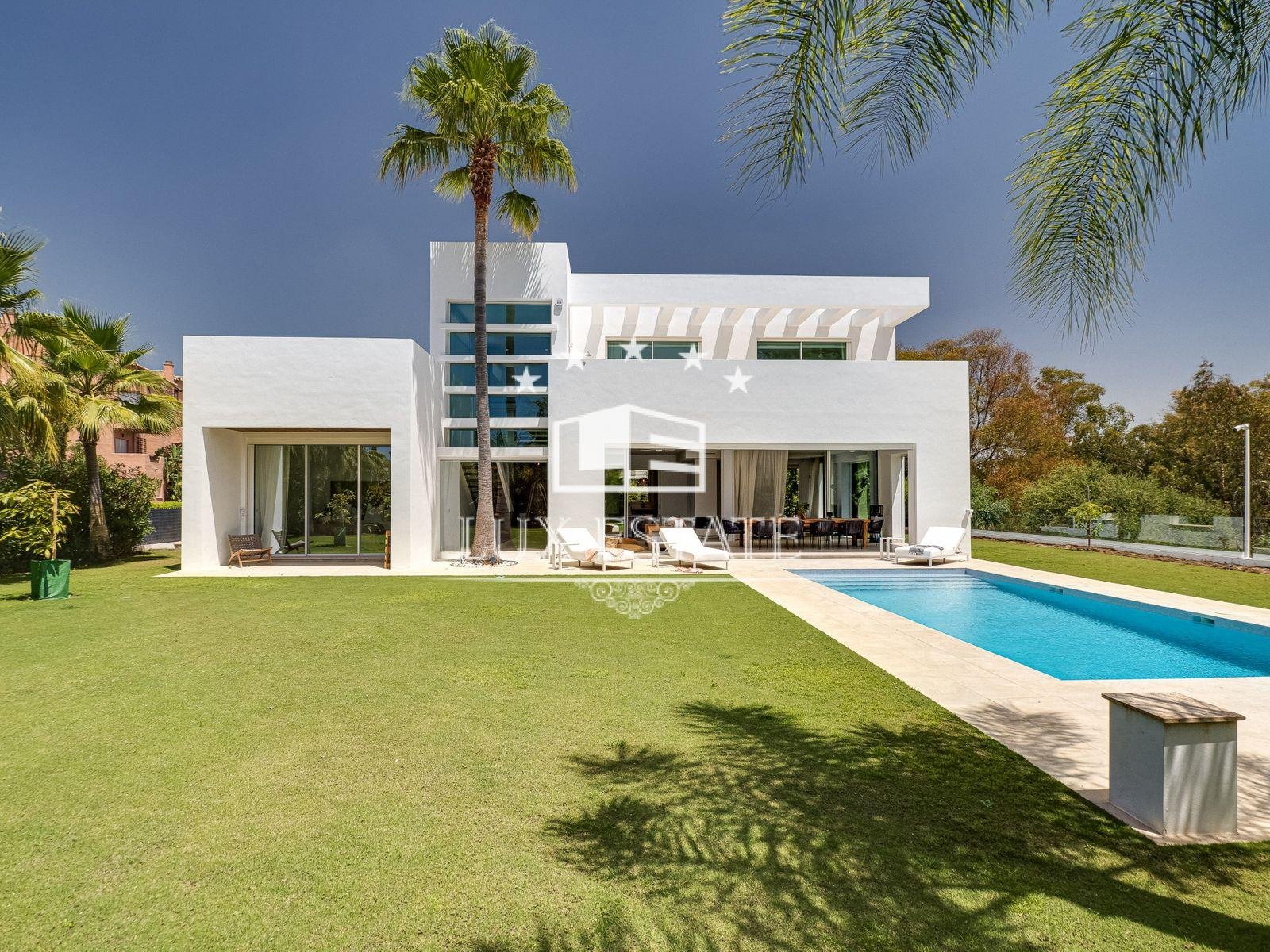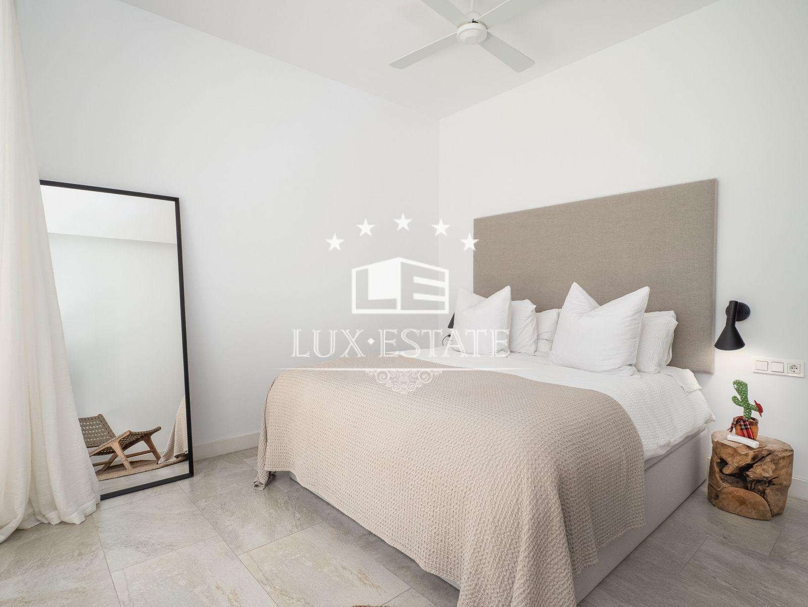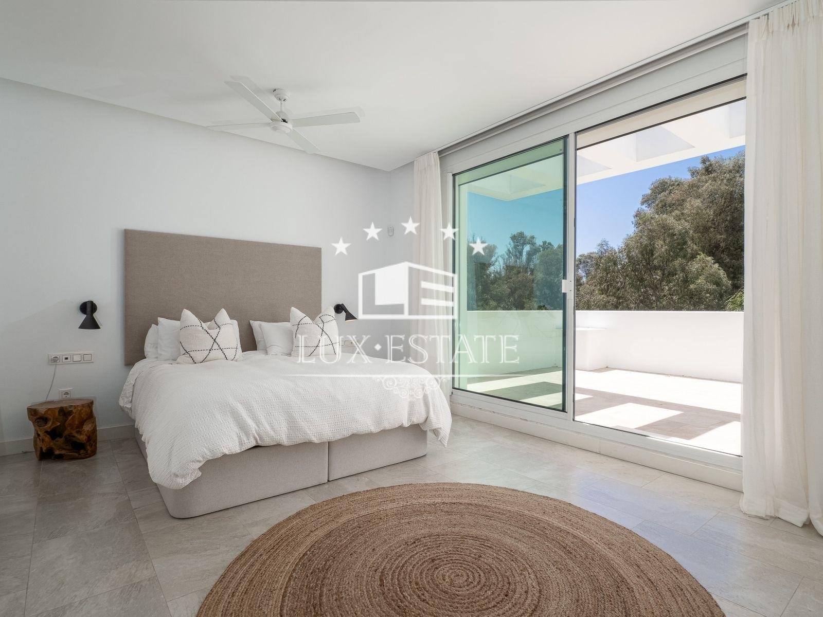 Immaculate home in an enviable location on a level plot, situated in the beachfront neighbourhood of Casasola, adjacent to Guadalmina Baja and accessible on foot from the beach. The property is a detached Ibiza-style house featuring a private pool.