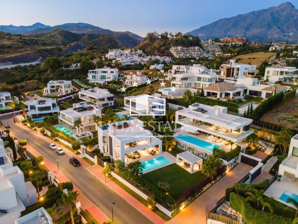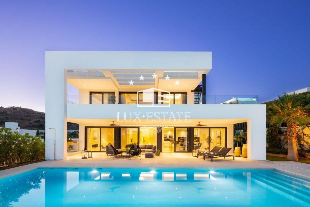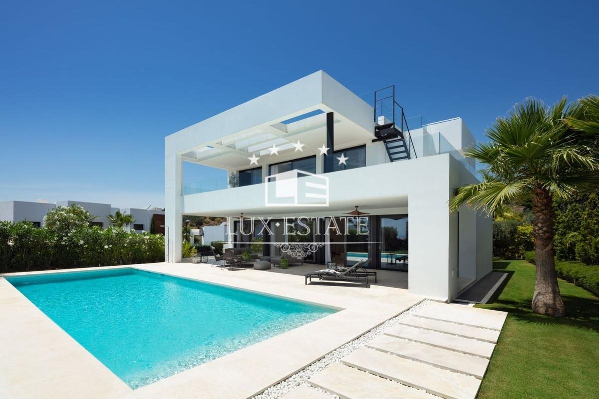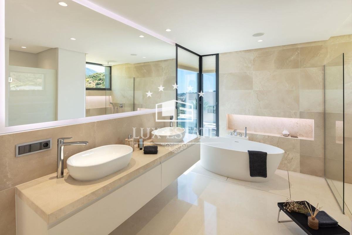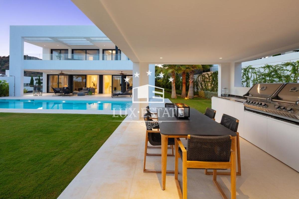 Condition : Excellent, New Construction. Pool : Private. Climate Control : Air Conditioning, U/F Heating, U/F/H Bathrooms. Views : Mountain, Panoramic, Garden, Pool. Features : Covered Terrace, Fitted Wardrobes, Private Terrace, Solarium, Gym, Storage Room, Utility Room, Ensuite Bathroom, Marble Flooring, Jacuzzi, Barbeque, Double Glazing, Domotics, Basement, Fiber Optic. Furniture : Fully Furnished. Kitchen : Fully Fitted. Garden : Private. Security : Entry Phone, Alarm System. Parking : Garage, Private. Utilities : Electricity, Drinkable Water.