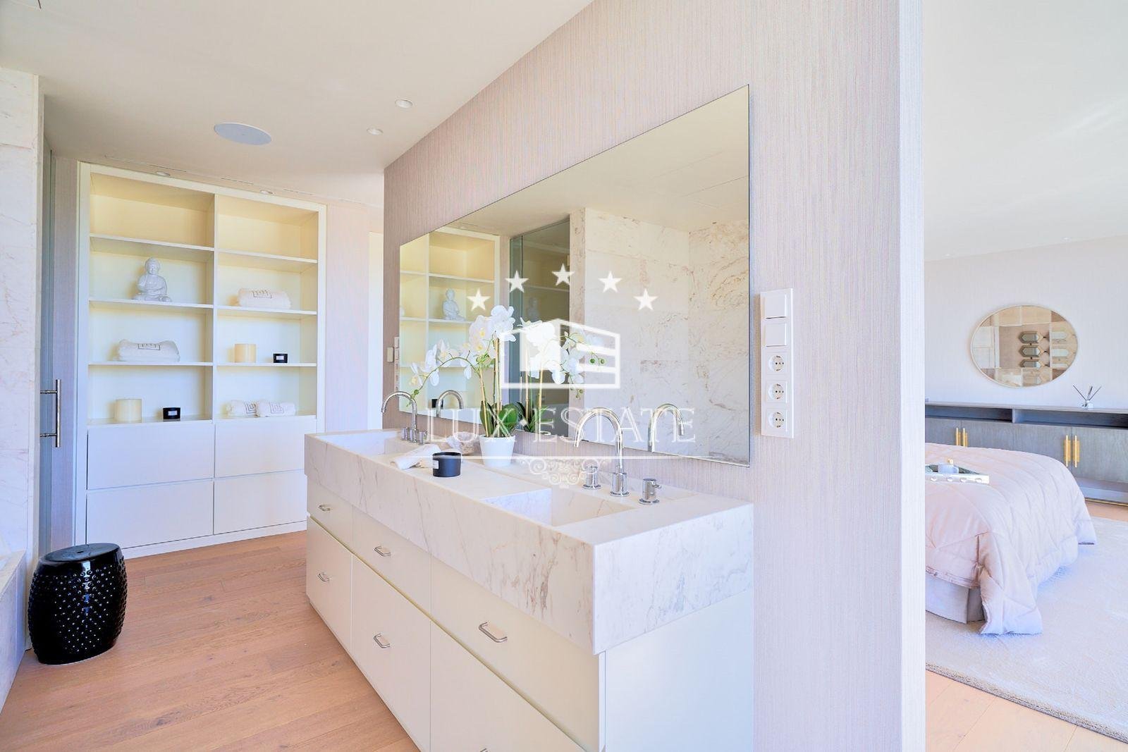 Experience Contemporary Design and Timeless Luxury come to life in this villa. The spacious living area seamlessly blends with an open-plan kitchen, creating a bright and inviting atmosphere. Equipped with state-of-the-art appliances, the kitchen transforms into a gourmet’s haven, complemented by an innovative outdoor kitchen.