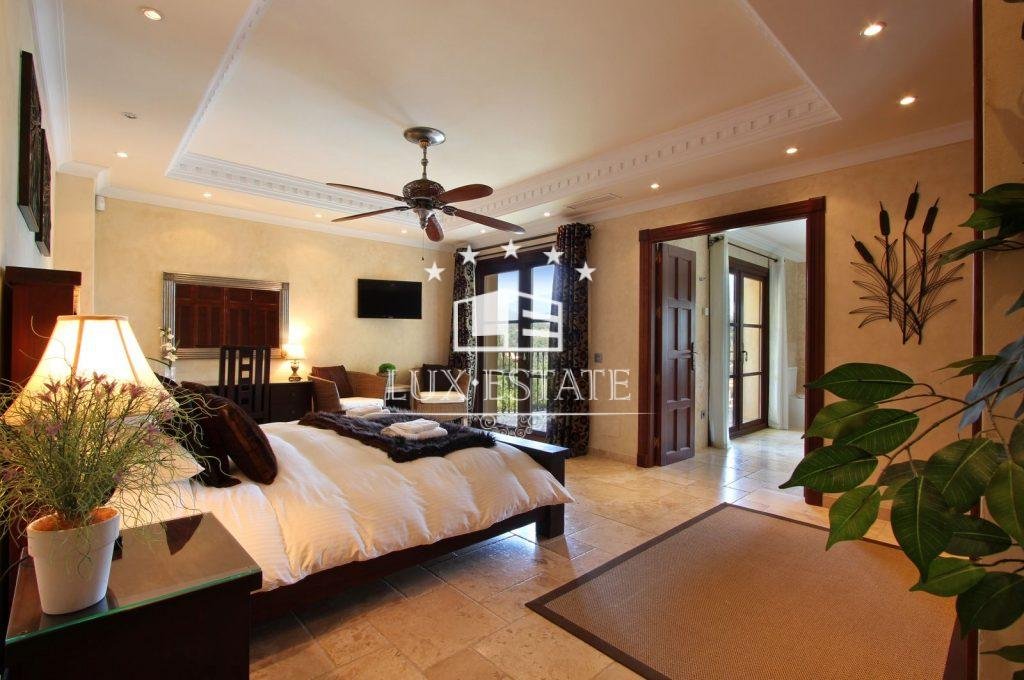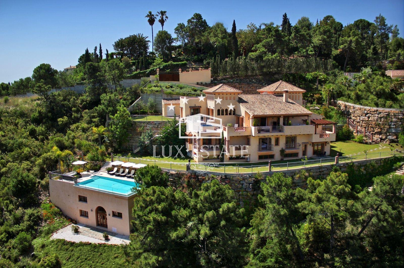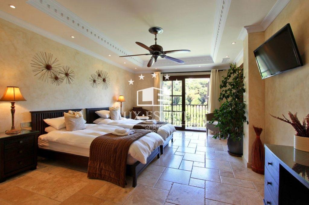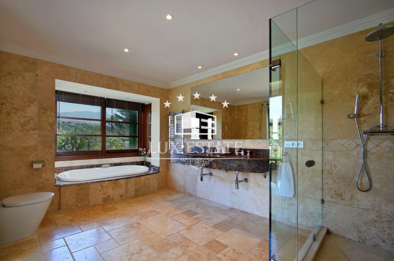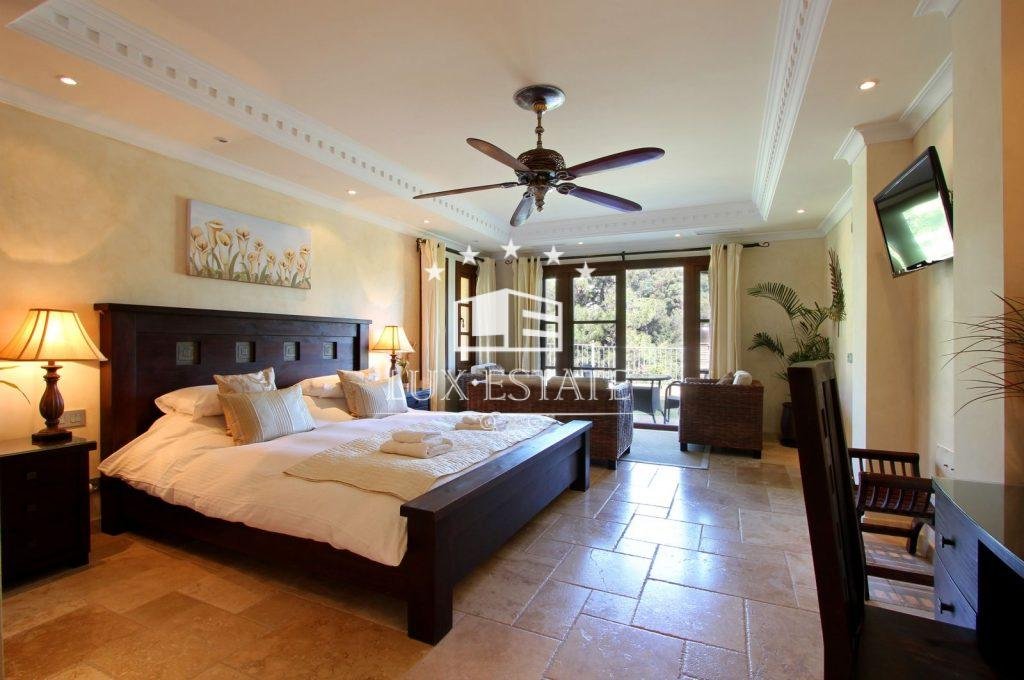 Gran Hacienda Florentina sets new standards of luxury and style. Affording breathtaking views from almost every room, it is a fully airconditioned 6 bedroom villa complete with a fully independent 1 bedroom owners duplex apartment. On the first floor of the villa is the ultra modern fully-equipped kitchen finished off with 6cm thick polished stone tops. The large airy lounge with 6m high ceiling is entered via an elevated stone walk way thus giving the villaa real sense of space and light. Several outdoor terraces with seating, loungersand Jacuzzi each giving breathtaking views lead off of the main living areas. The master suite comes complete with private terrace, contemporary stone and marble finished bathroom, dressing room & 8-person sauna. All the bedrooms in the villa have similar ensuite bathrooms again finished to the same exquisite standard, with terraces and views Bedrooms All six bedrooms are large and luxurious, fully equipped with both air conditioning and handmade teak ceiling fans.They have solid-wooden furniture, and are sympathetically decorated with pictures and ornaments by internationally renowned designers Hamilton Interiors. All of the bedrooms have dressing tables, and comfortable seating. All of thebedrooms and studio enjoy a private balcony/terrace. . The studiois a complete luxury 2-bedroom apartment, with separate entrance, fully equipped kitchen, dining tables, living roomwith 4-metre high feature windows offering panoramic views, and private terrace. Bathrooms All bedrooms have private en-suite bathrooms. Each bathroom is spacious and luxurious, and finished with the finest Italian marble, and chrome towel rails Bathrooms 1,2,3 and 5 have both large showers, containing both an overhead rain shower as well as a wall shower. They also have sunken double-ended baths for a long relaxing soak. Bathroom 4, and the duplex studio have large walk-in showers also with both rain and wall showers. Bathrooms 7 and 8 are guest toilets. Bedroom 1, the master bedroom, also has a 8 person sauna.
