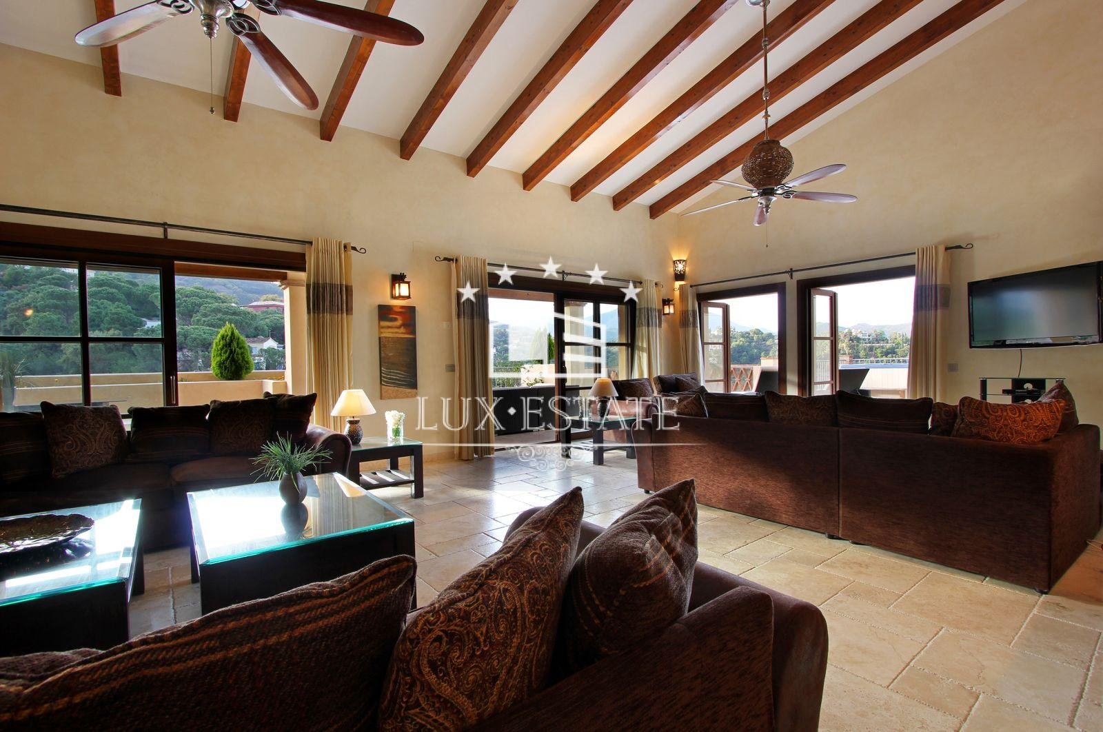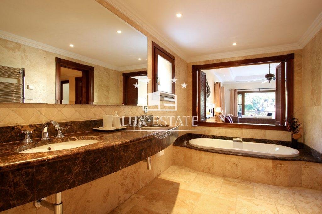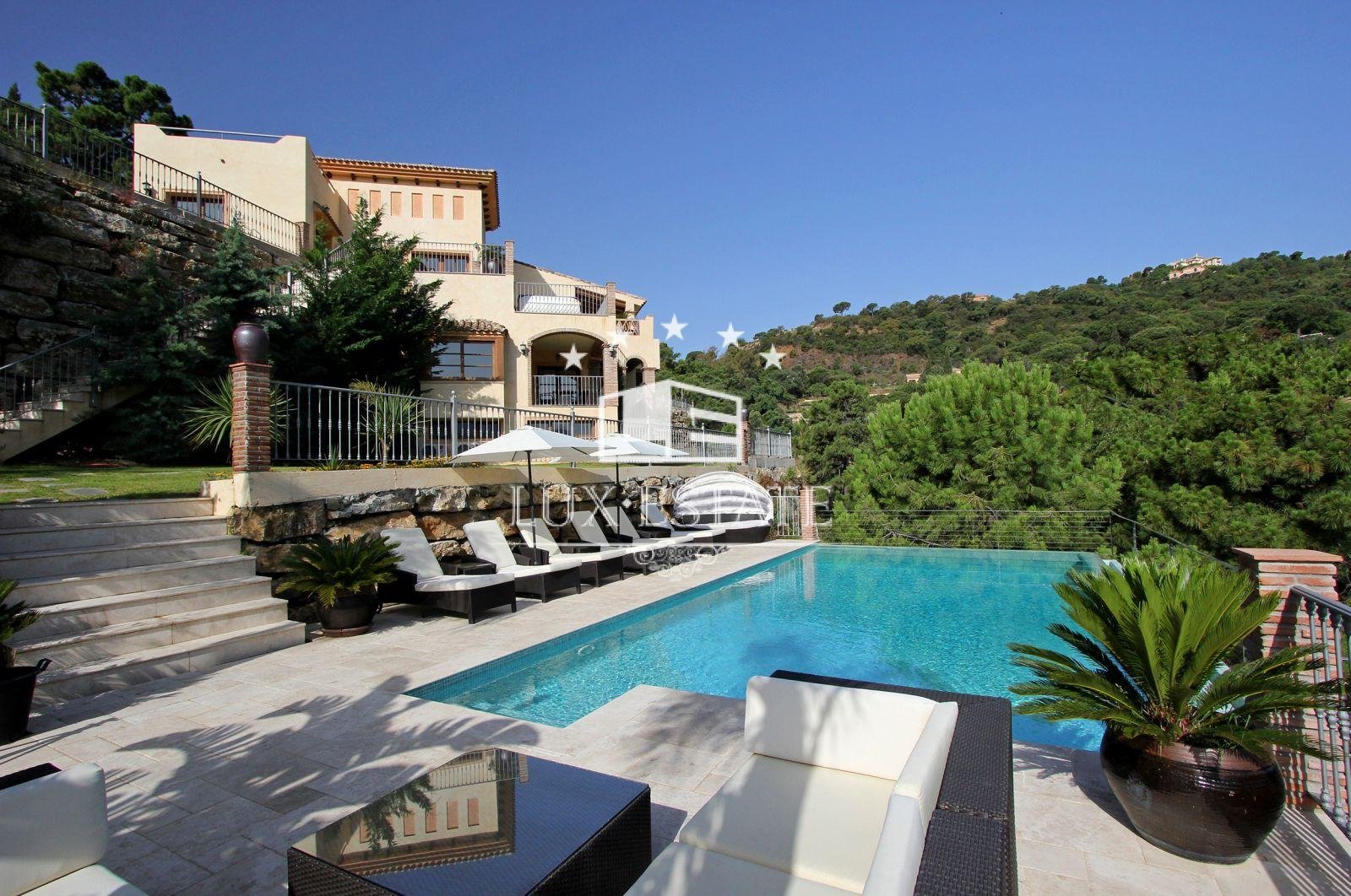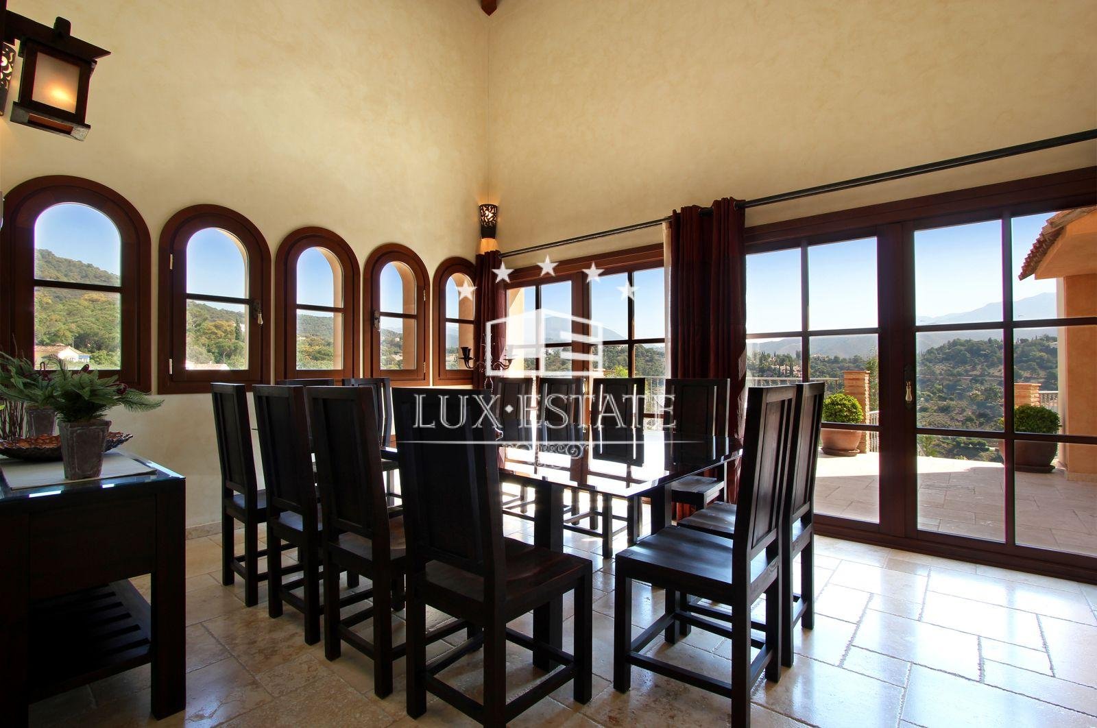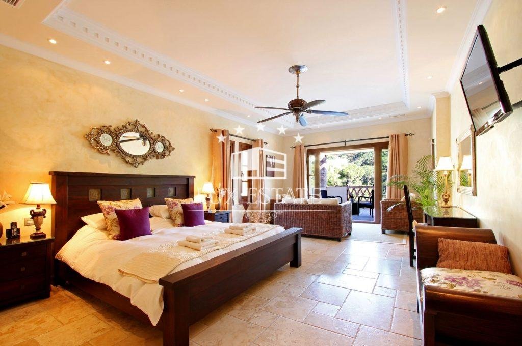 Gran Hacienda Florentina sets new standards of luxury and style. Affording breathtaking views from almost every room, it is a fully airconditioned 6 bedroom villa complete with a fully independent 1 bedroom owners duplex apartment. On the first floor of the villa is the ultra modern fully-equipped kitchen finished off with 6cm thick polished stone tops. The large airy lounge with 6m high ceiling is entered via an elevated stone walk way thus giving the villaa real sense of space and light. Several outdoor terraces with seating, loungersand Jacuzzi each giving breathtaking views lead off of the main living areas. The master suite comes complete with private terrace, contemporary stone and marble finished bathroom, dressing room & 8-person sauna. All the bedrooms in the villa have similar ensuite bathrooms again finished to the same exquisite standard, with terraces and views Bedrooms All six bedrooms are large and luxurious, fully equipped with both air conditioning and handmade teak ceiling fans.They have solid-wooden furniture, and are sympathetically decorated with pictures and ornaments by internationally renowned designers Hamilton Interiors. All of the bedrooms have dressing tables, and comfortable seating. All of thebedrooms and studio enjoy a private balcony/terrace. . The studiois a complete luxury 2-bedroom apartment, with separate entrance, fully equipped kitchen, dining tables, living roomwith 4-metre high feature windows offering panoramic views, and private terrace. Bathrooms All bedrooms have private en-suite bathrooms. Each bathroom is spacious and luxurious, and finished with the finest Italian marble, and chrome towel rails Bathrooms 1,2,3 and 5 have both large showers, containing both an overhead rain shower as well as a wall shower. They also have sunken double-ended baths for a long relaxing soak. Bathroom 4, and the duplex studio have large walk-in showers also with both rain and wall showers. Bathrooms 7 and 8 are guest toilets. Bedroom 1, the master bedroom, also has a 8 person sauna.