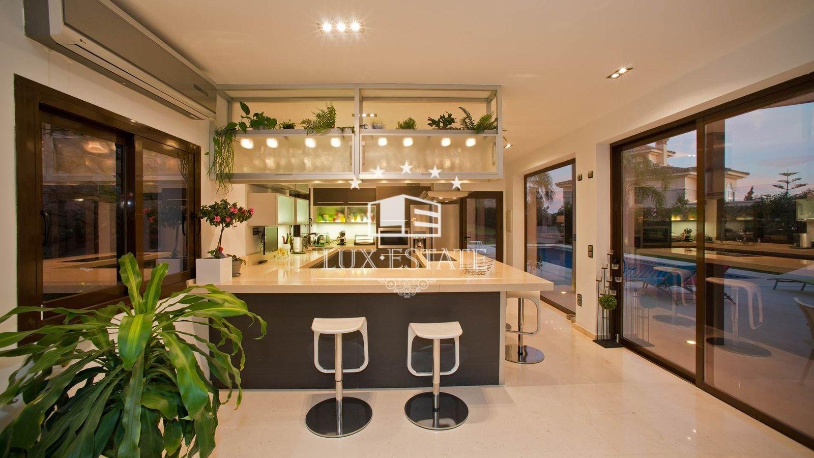 Outside, the property is designed for relaxation and entertainment with multiple chill-out seating and dining areas surrounding the swimming pool, along with a covered bar area and built-in barbecue.