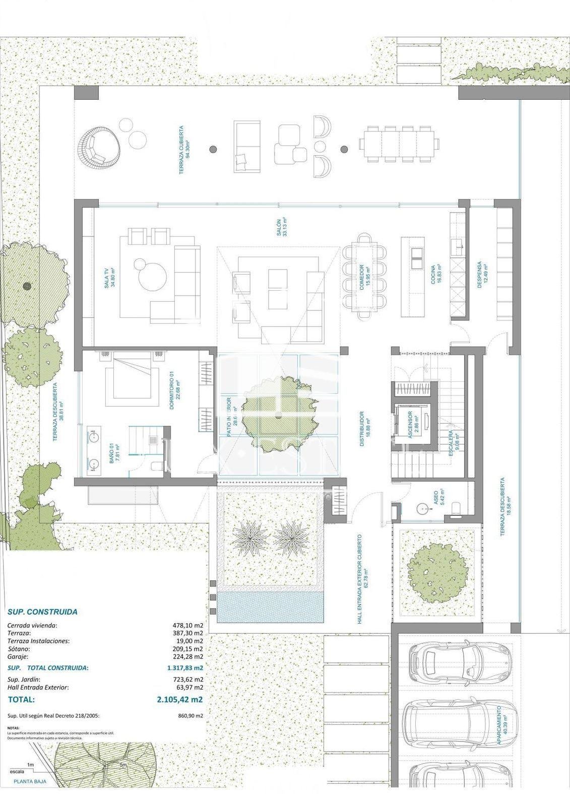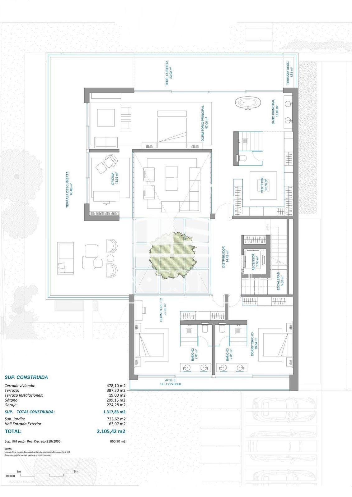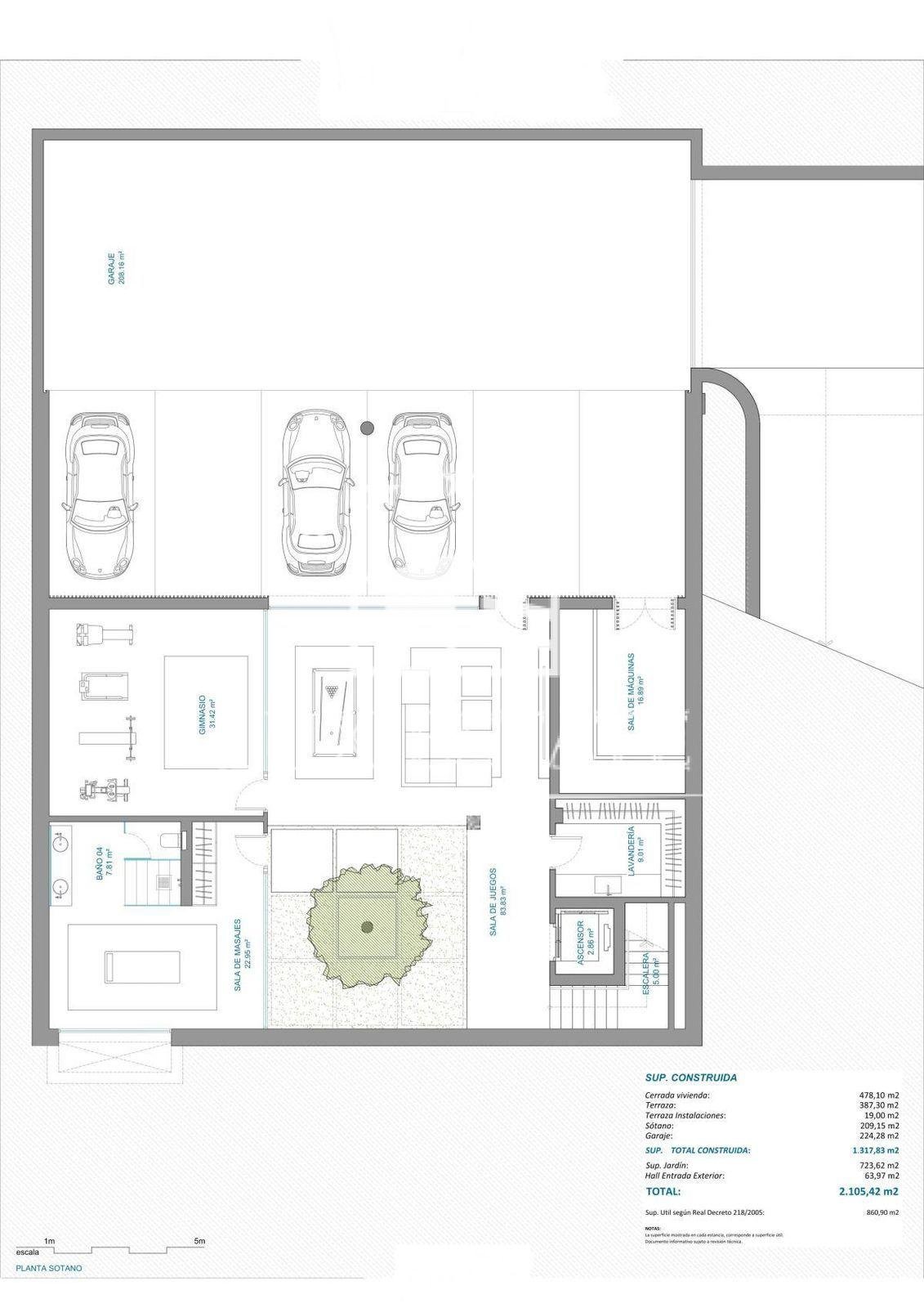 Descending to the basement level reveals an impressive array of entertainment features, including a cinema room and a garage capable of housing up to six cars.