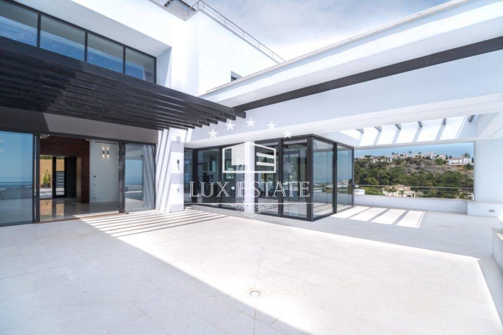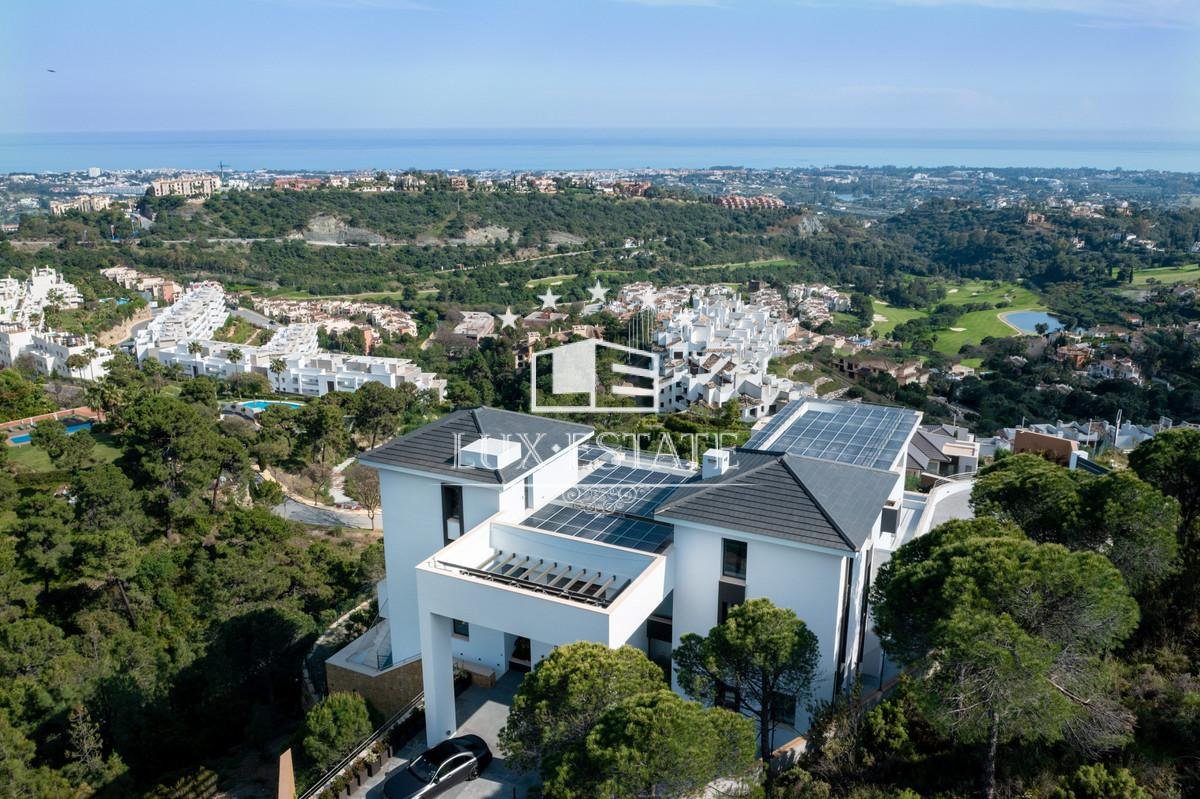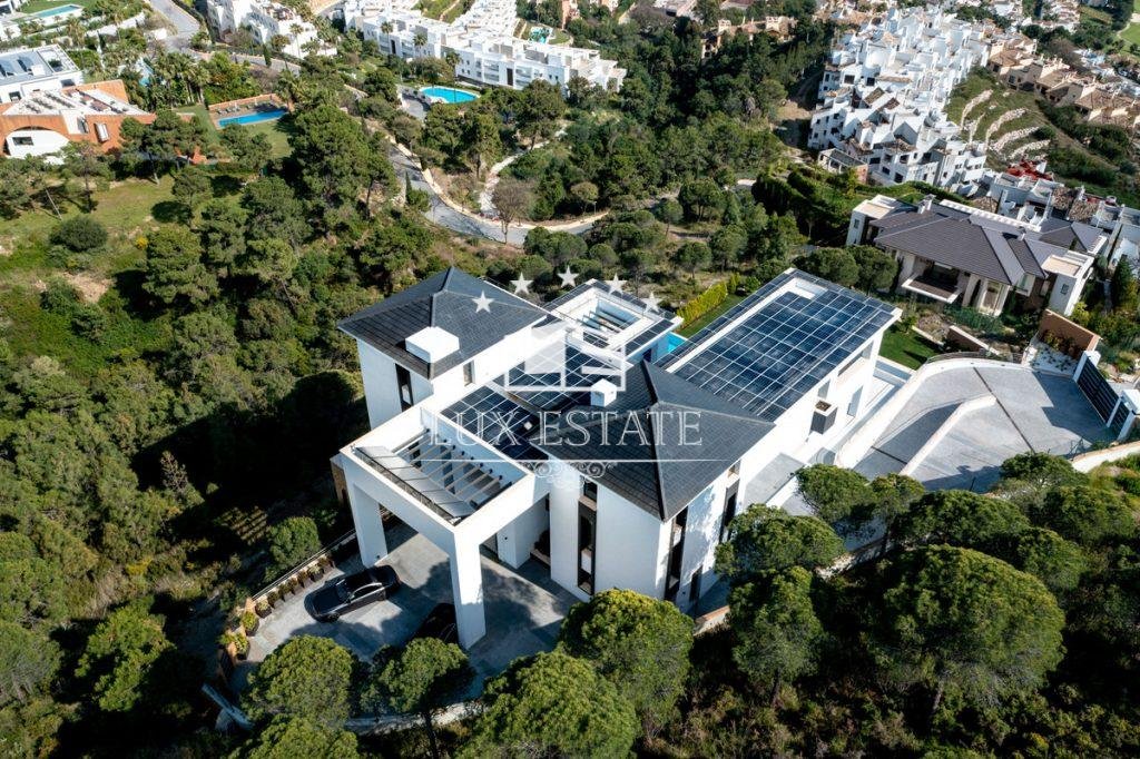 Has the following facilities mountainside, air conditioning, fully fitted kitchen, utility room, fireplace, marble floors, jacuzzi, sauna, basement, solar panels, guest room, storage room, gym, alarm, solarium, security entrance, double glazing, video entrance, dining room, barbeque, security service 24h, guest toilet, private terrace, kitchen equipped, living room, study room, parquet floors, sea view, mountain view, golf view, heated pool, underfloor heating (throughout), automatic irrigation system, security shutters, home automation system, laundry room, internet – wifi, covered terrace, electric blinds, fitted wardrobes, gated community, lift, panoramic view, cinema room, close to children playground, uncovered terrace, games room, glass doors, open plan kitchen, optional furniture, excellent condition, close to town, close to schools, surveillance cameras, guest apartment, office room, pets allowed, armored door, kitchenette, ground floor patio, porcelain floors and internet – fibre optic.