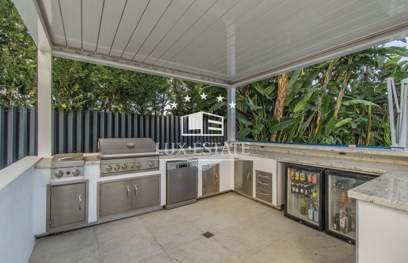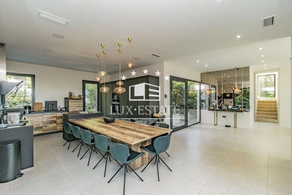 Externally, the property boasts a spacious plot complete with a private pool, a fully equipped outdoor kitchen, and a terrace that offers breathtaking views of the sea.
