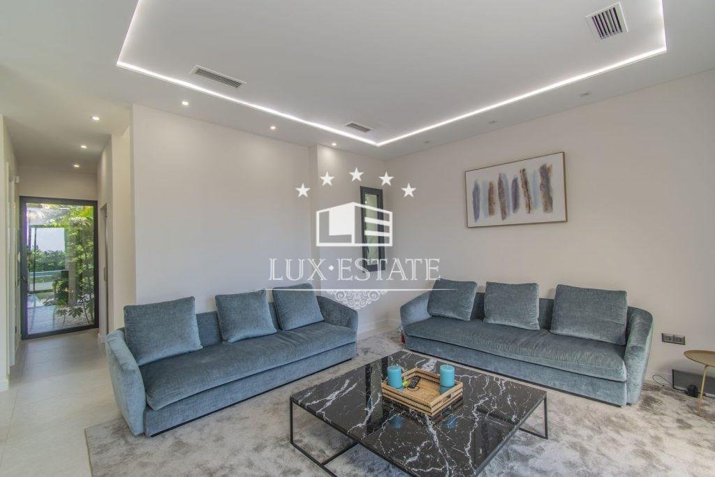 This exceptional, modern villa boasts luxurious features and is available for long-term rental.