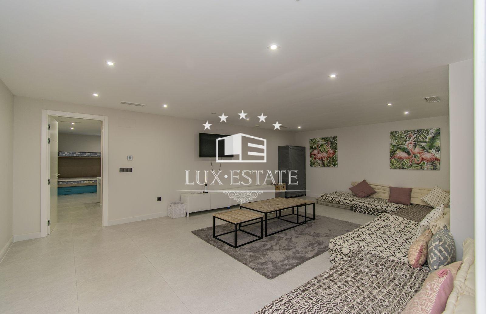 With accommodation comprising six bedrooms, four bathrooms and a toilet, and a large living room with an open-plan kitchen, this stylish property is distributed over two floors and a basement. The basement also includes a TV room and a garage.
