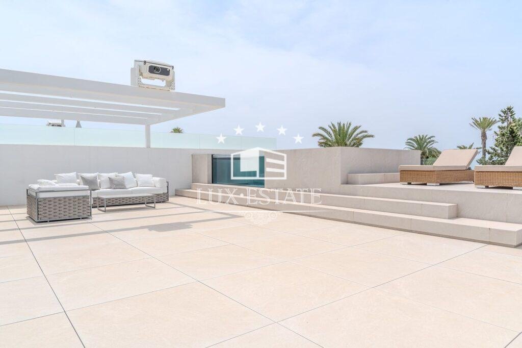 The properties offer a stunning private rooftop solarium complete with a pool-jacuzzi and panoramic views, perfect for relaxing or entertaining. Residents also enjoy access to an exclusive communal swimming pool shared by only six homes.