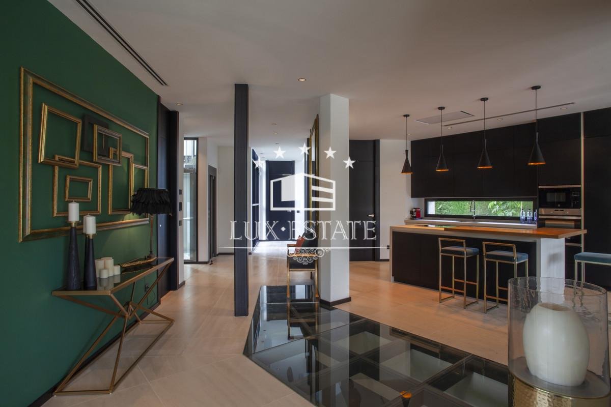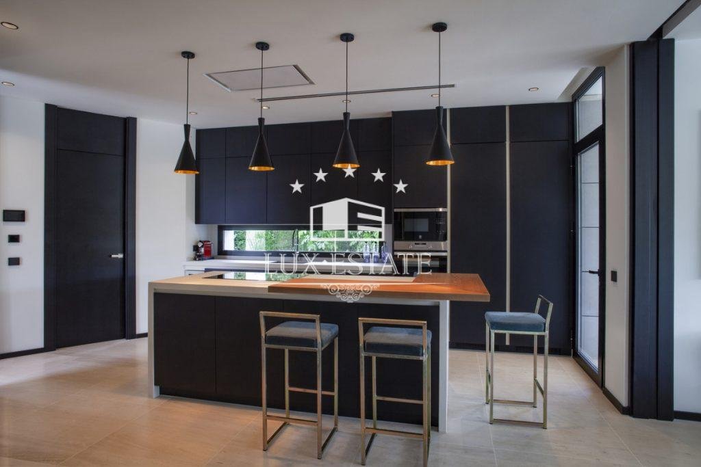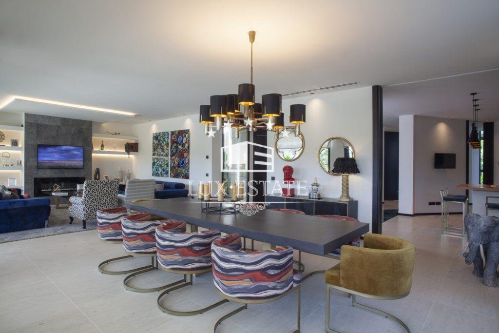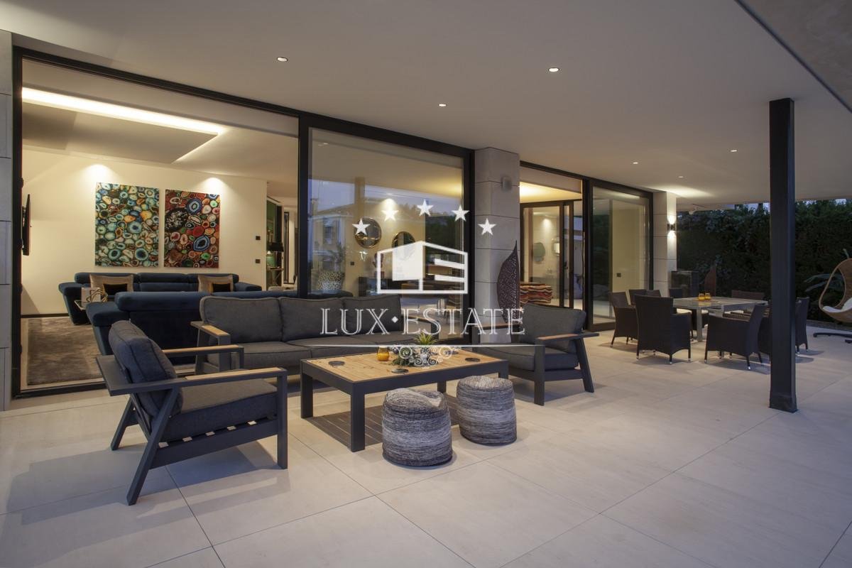 Spacious interior spaces bathed in natural light extended by huge terraces leading to a fantastic swimming pool and superb Mediterranean gardens, an ultramodern kitchen fully equipped with very high-end Balay appliances, 7 en-suite bedrooms, 6 bathrooms, swimming pool, one with two windows overlooking the basement with a view of the cars.