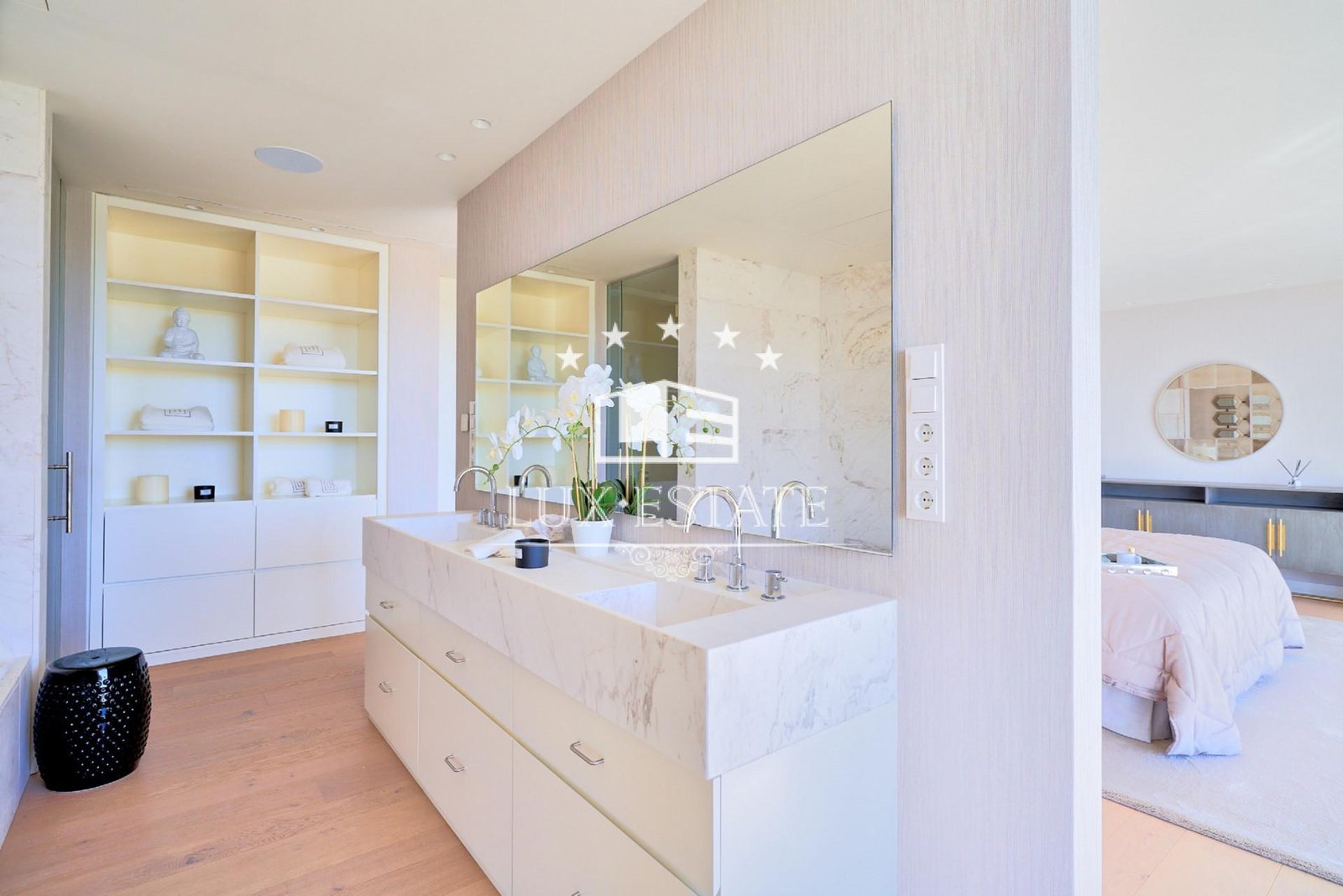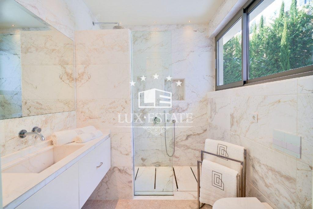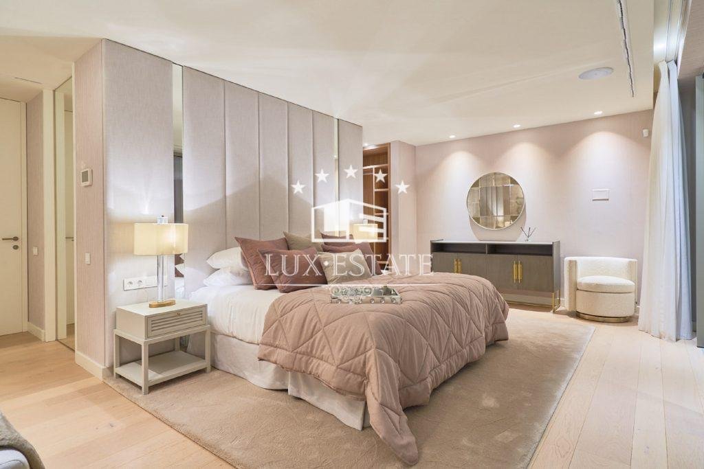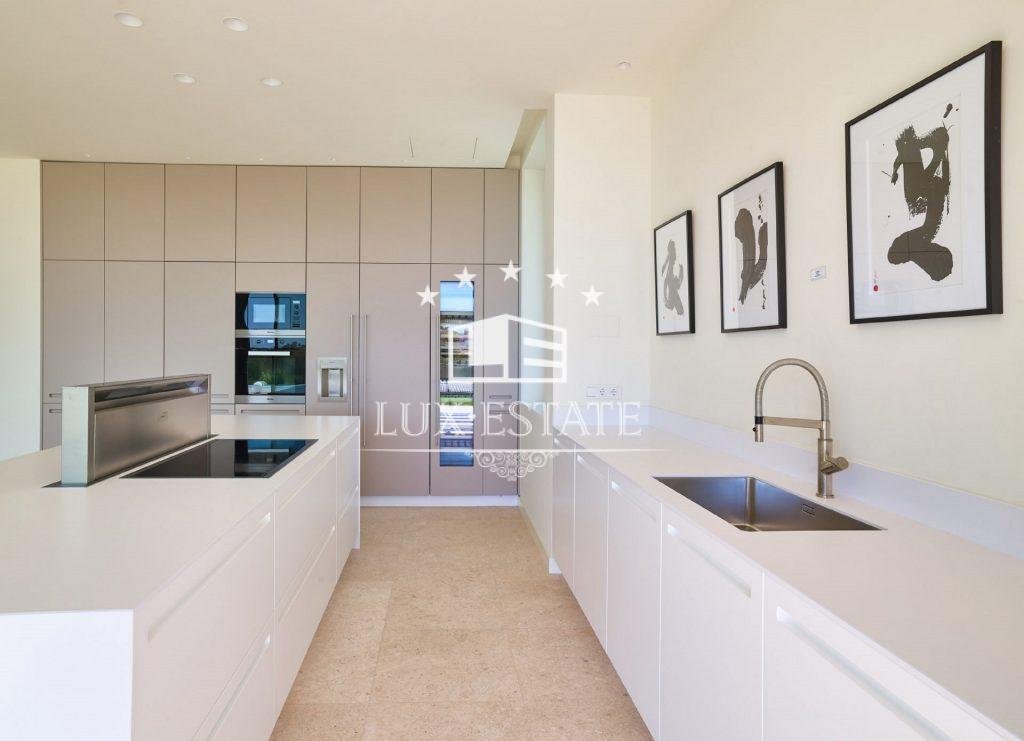 Contemporary architecture comes to life in the spacious living area with its open-plan kitchen, where the flowing transitions between rooms create an inviting and bright ambience. The kitchen, equipped with state-of-the-art appliances, becomes a gourmet’s paradise. In addition, the house has an innovative outdoor kitchen. Villa is built on two levels and a basement and offers a total of 5 bedrooms, carefully designed for maximum comfort and privacy. Each bedroom has its own bathroom, plus two extra guest toilets.