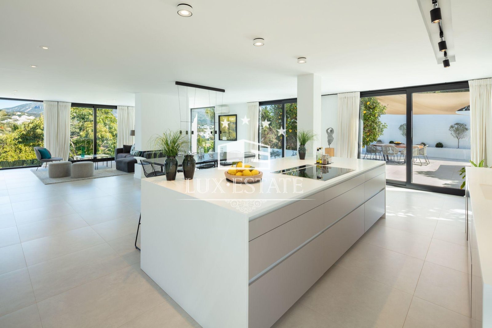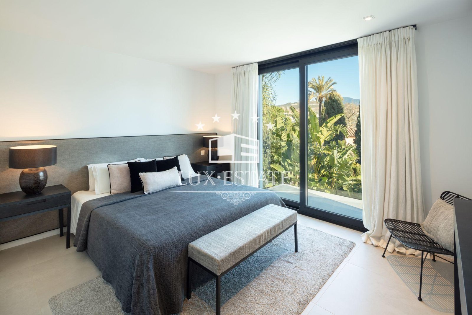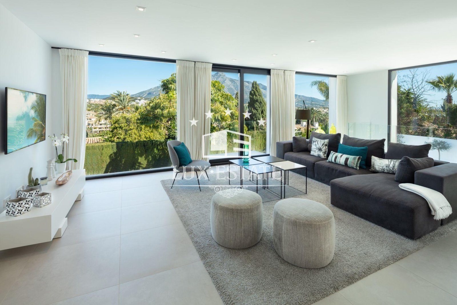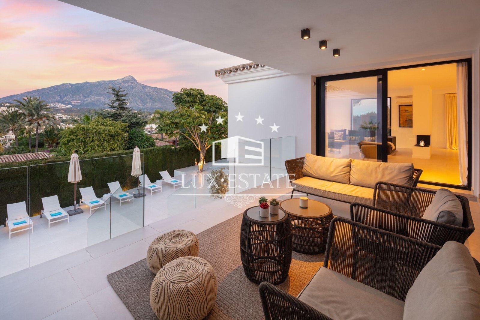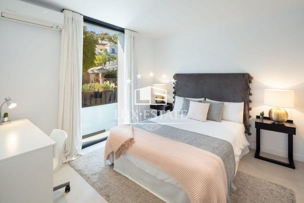 The villa welcomes you into an open-plan space, exquisitely finished and decorated. The modern kitchen is spacious and enjoys high qualities throughout. The living room and bedrooms boast magnificent views to La Concha mountain and the Golf Valley. The exteriors of Villa Roma as cozy, easy to maintain and spacious.