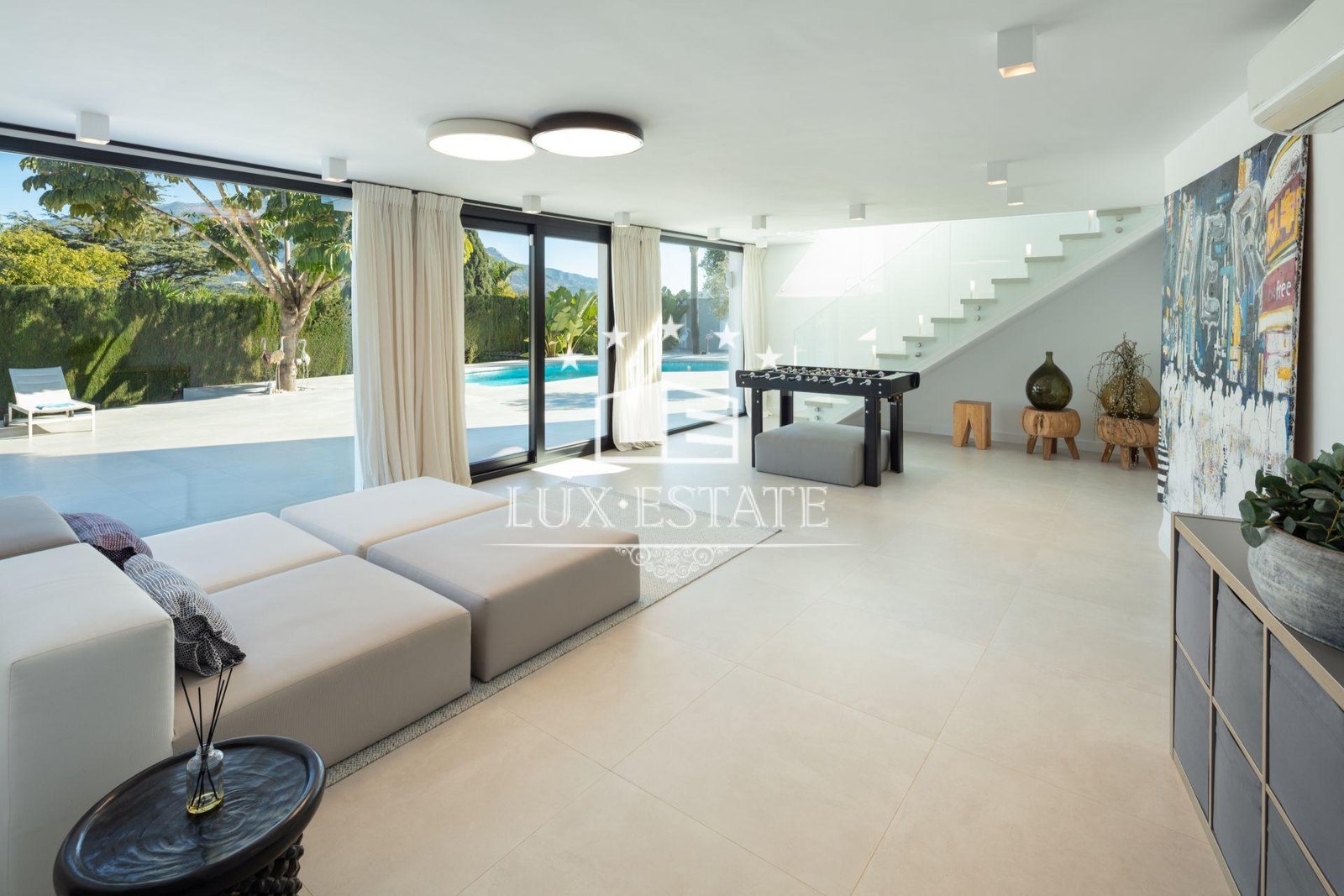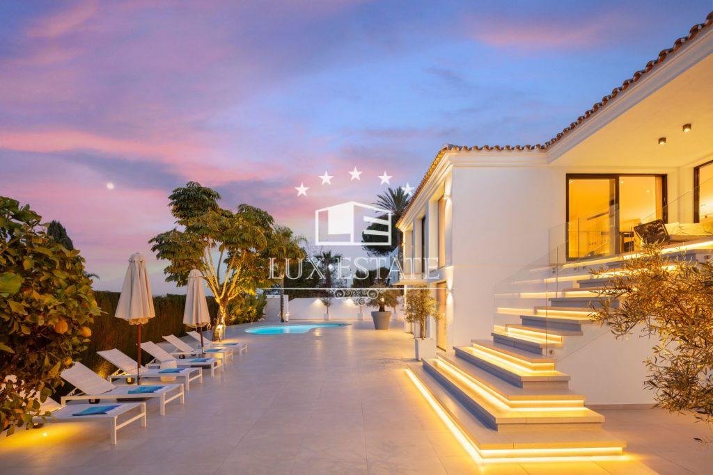 Villa Roma is a stunning fully renovated modern villa nestled in the heart of the Golf Valley, in Nueva Andalucía. This magnificent villa is conveniently located in Las Brisas, within short distance all amenities, restaurants, exclusive golf courses and the beach.